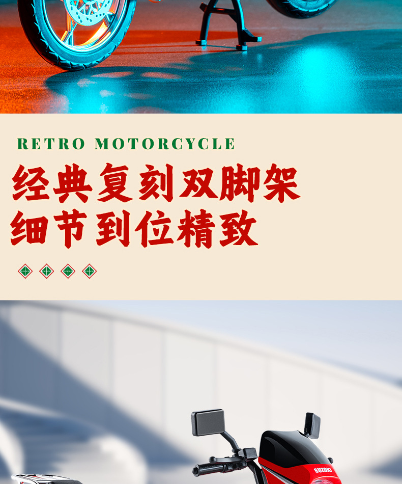 1:10 Suzuki King alloy motorcycle model collection, retro decorative items, sound and light shock-absorbing boys' toys, gift wholesale
