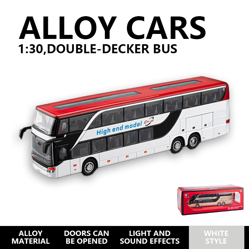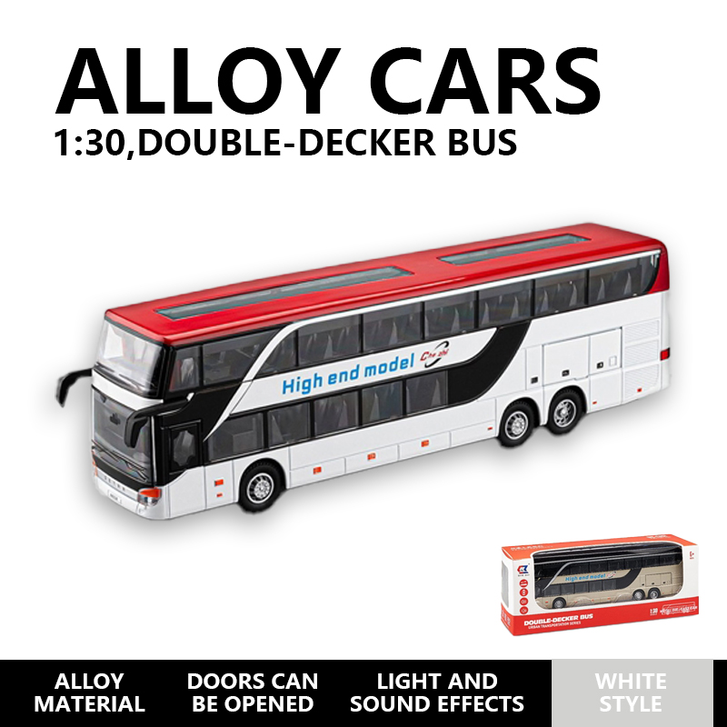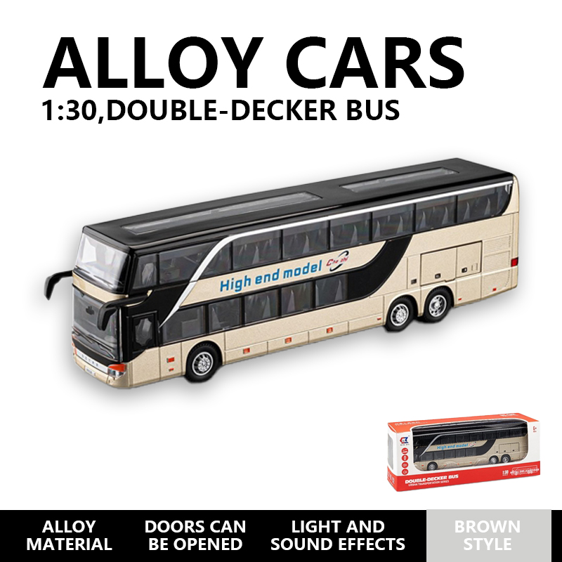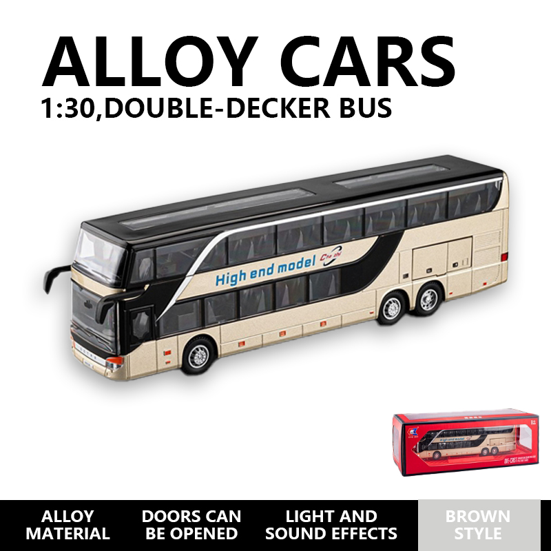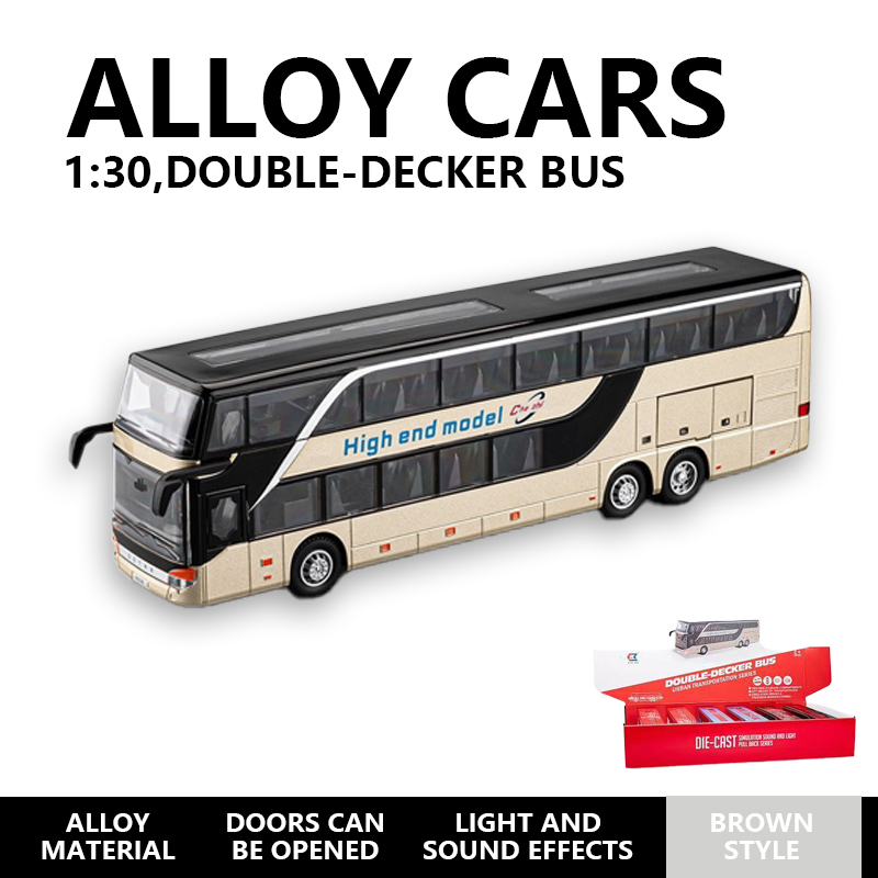 1:30 Business long-distance double-decker bus alloy model, Rebound sound and light effect, trendy art, desktop collectible