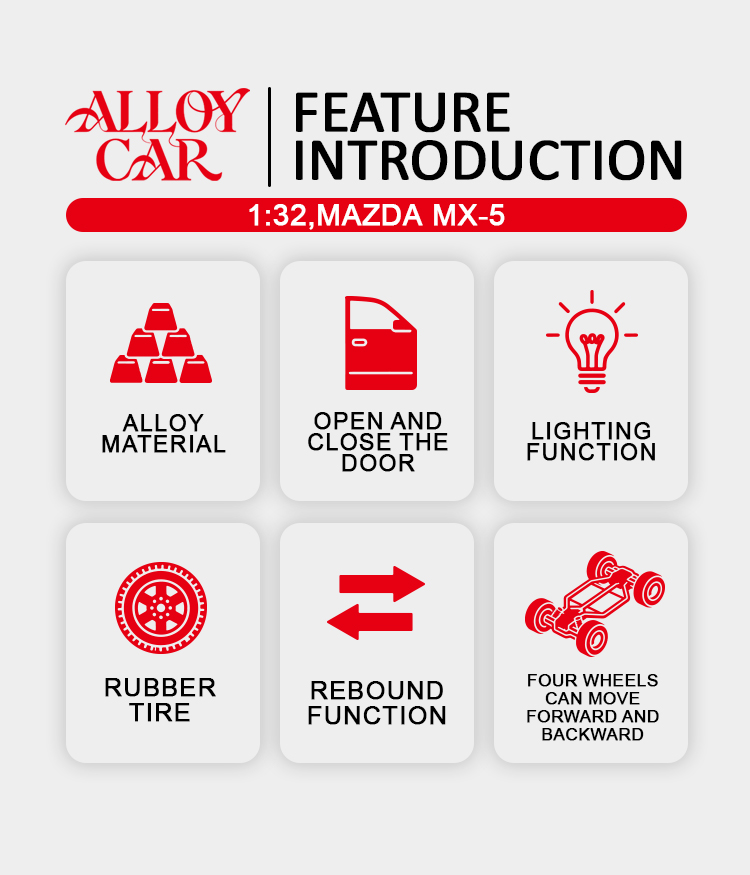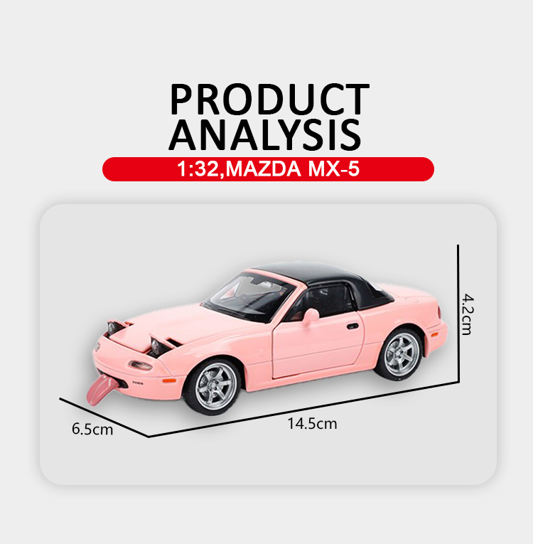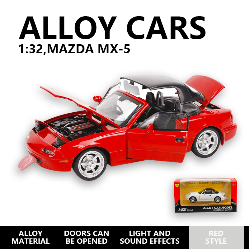1:32 Mazda MX-5 alloy car model toy car, small car model collection, display item, children's toy car, metal car model