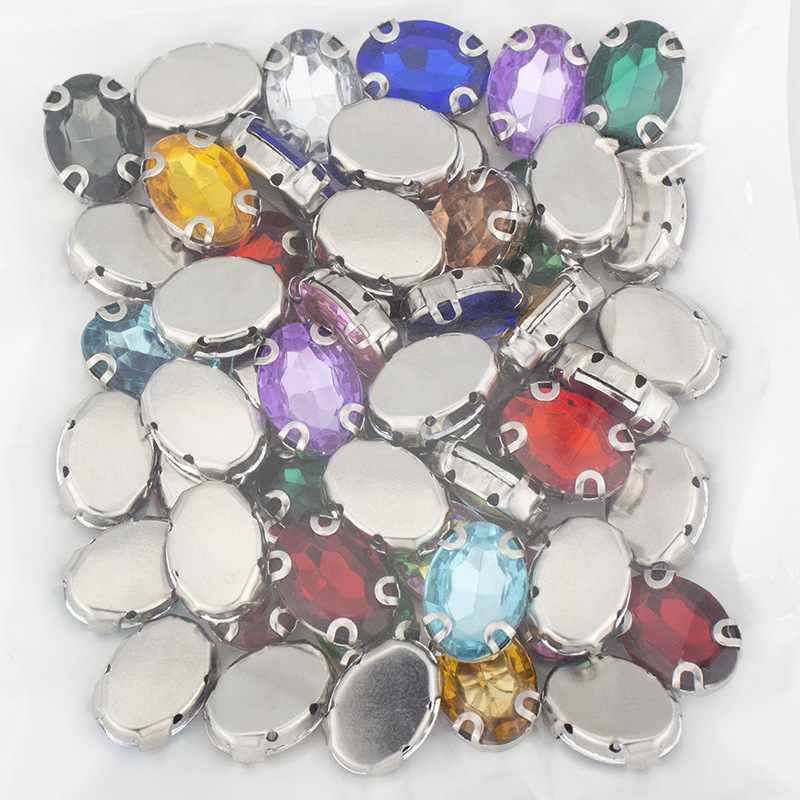 10*14mm oval claw drill, irregular-shaped acrylic crystal drill, hand-sewn white k silver base, DIY clothing material accessories wholesale
