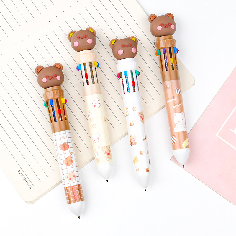 10-color press ballpoint pens, press pens, cartoon little brown bear, cute 10-color ballpoint pens, ballpoint pens, student stationery prizes