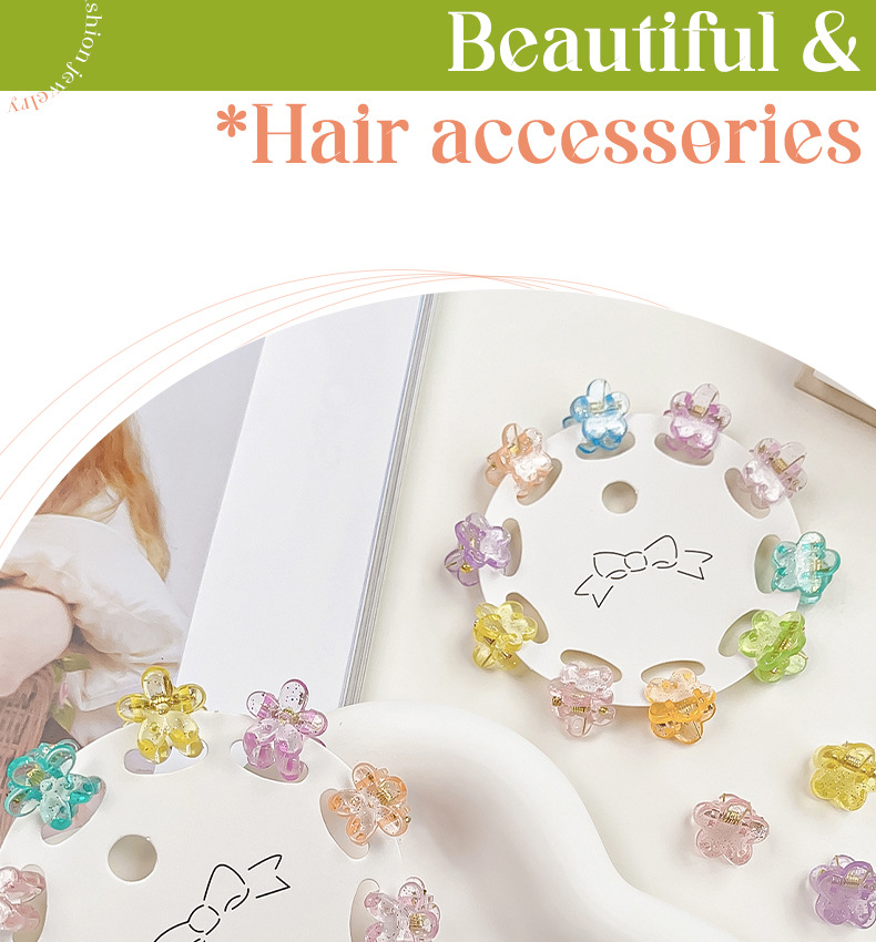 10-piece children's mini grab clip Hyuna style dopamine hair clip, jelly-colored glitter pink sweet and cute hair accessory headwear