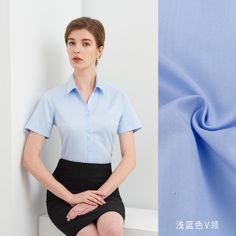 100s all-cotton DP non-ironing shirt for women, short-sleeved, form-fitting, professional interview, business commute, formal work uniform shirt