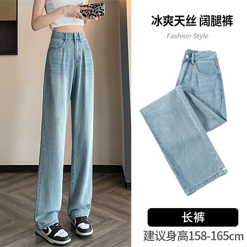 1619 High-waisted Tencel jeans for children, summer thinness, 2023 new style, straight leg, drape, petite, ice silk wide