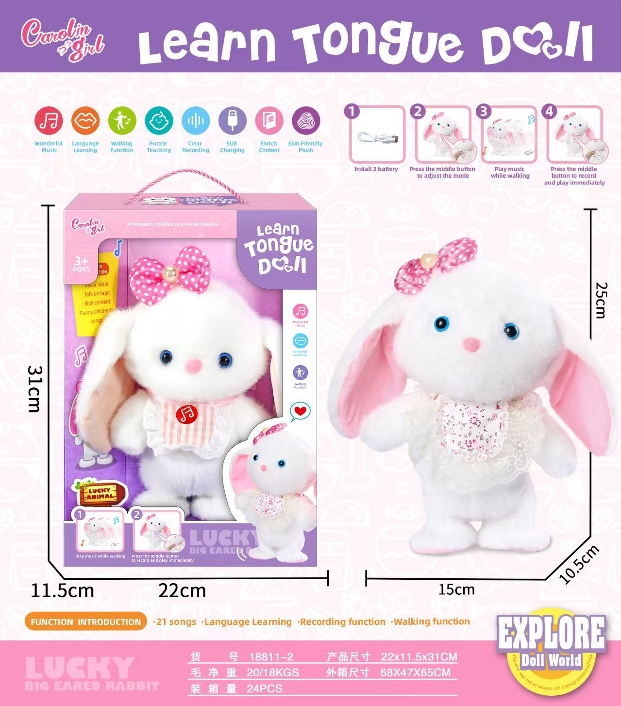 16g electric plush walking mechanism dolls, dog, sheep, rabbit, panda, penguin, drooping ear rabbit, recording children's songs, parent-child interaction