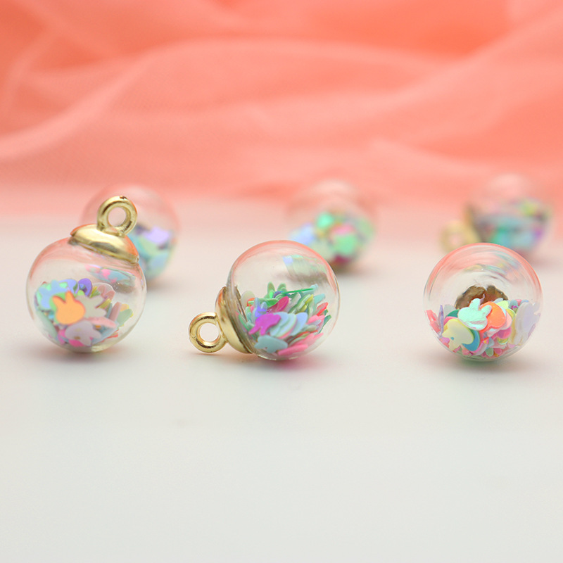 16mm rabbit sequined glass ball round pendant, hair band bracelet, keychain, children's DIY accessories