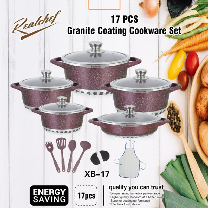 17 pieces set of marble Italian 17-piece aluminum pot, marble soup pot kitchenware set, tourmaline aluminum pot