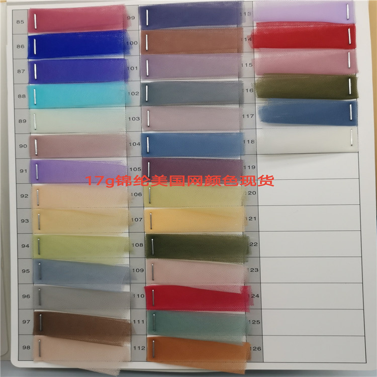 17g nylon American mesh in various colors in stock for children's dress skirts, fine Swiss mesh, nylon wedding dress mesh