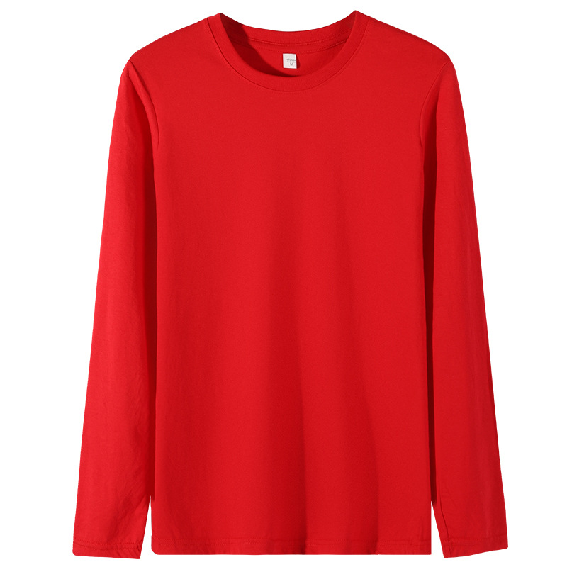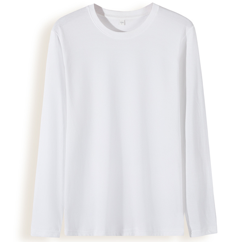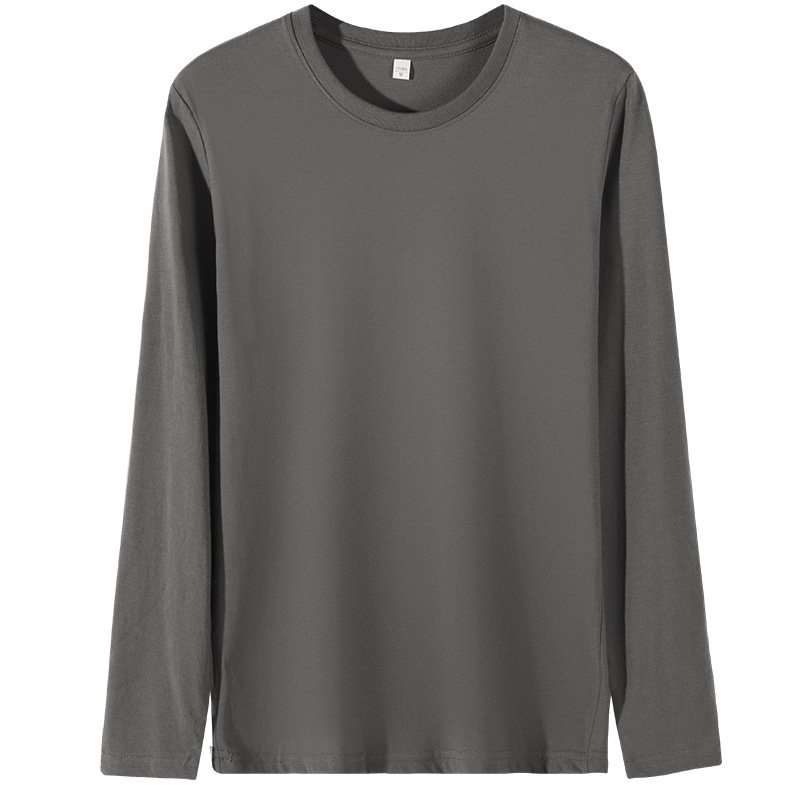 180g combed cotton men's long-sleeved T-shirt, long neck, trendy cultural T-shirt, printed logo T-shirt base layer, solid color
