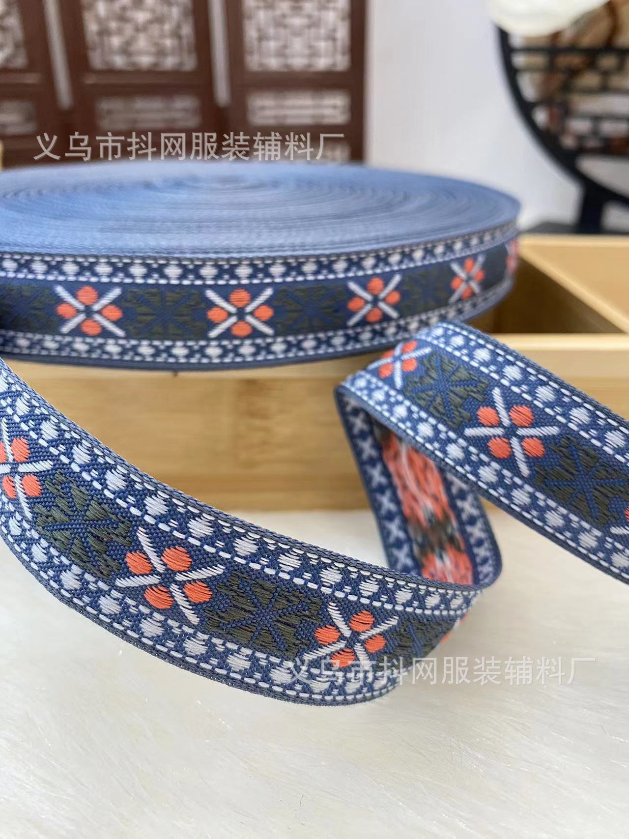 2.1- 2.5 cm handmade DIY bow webbing, ethnic minority style jacquard embroidery webbing, hair accessories and headwear
