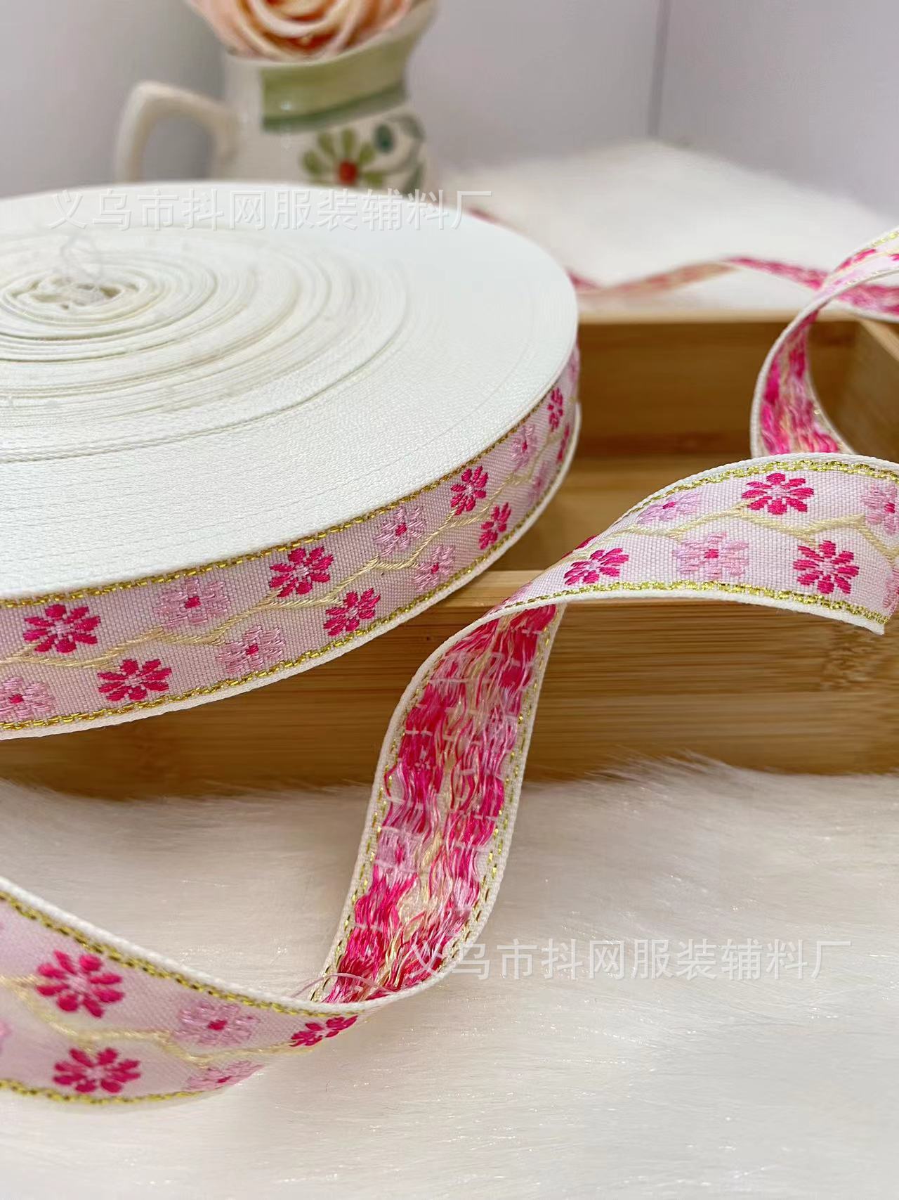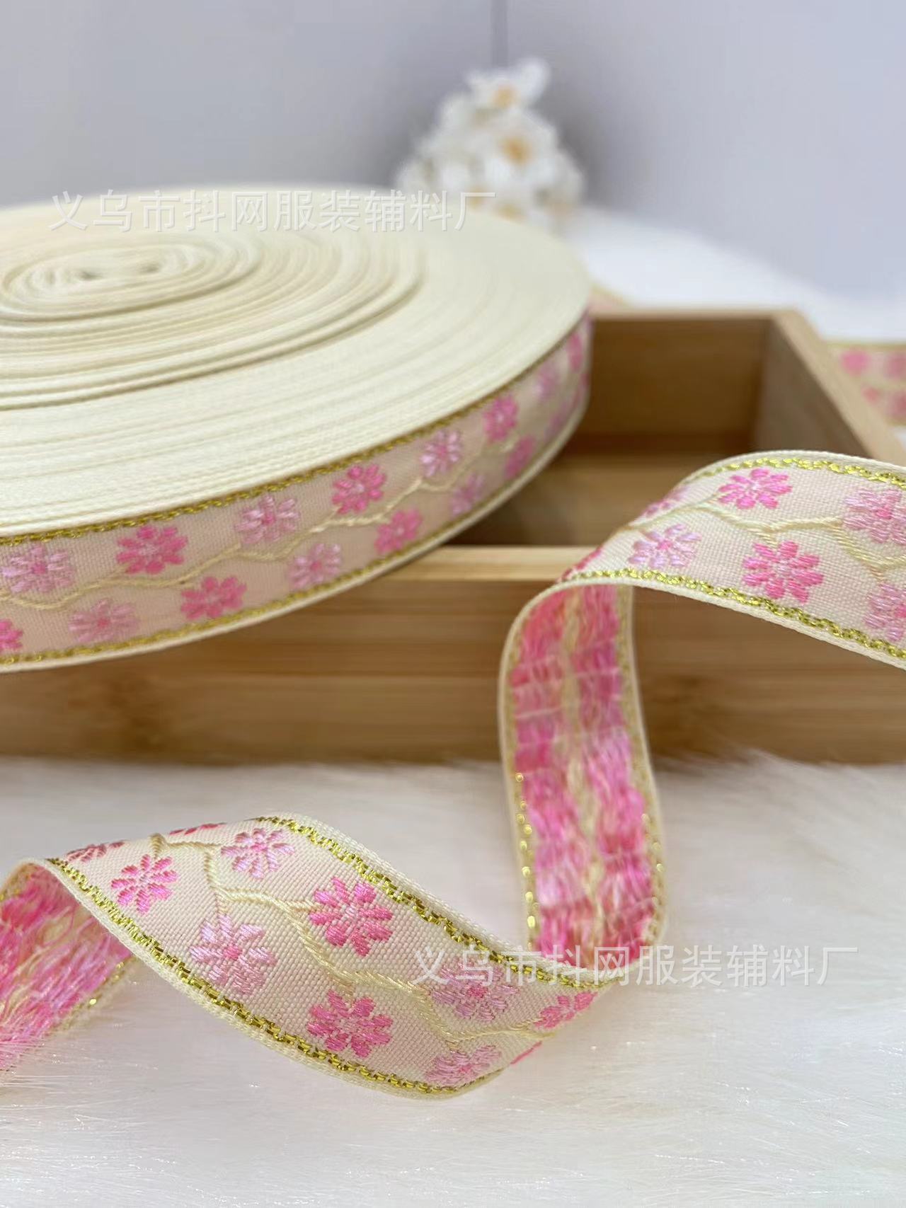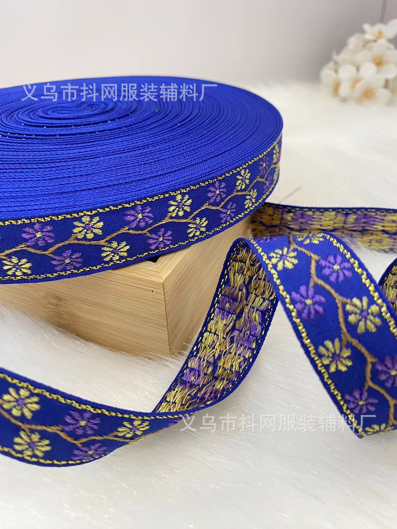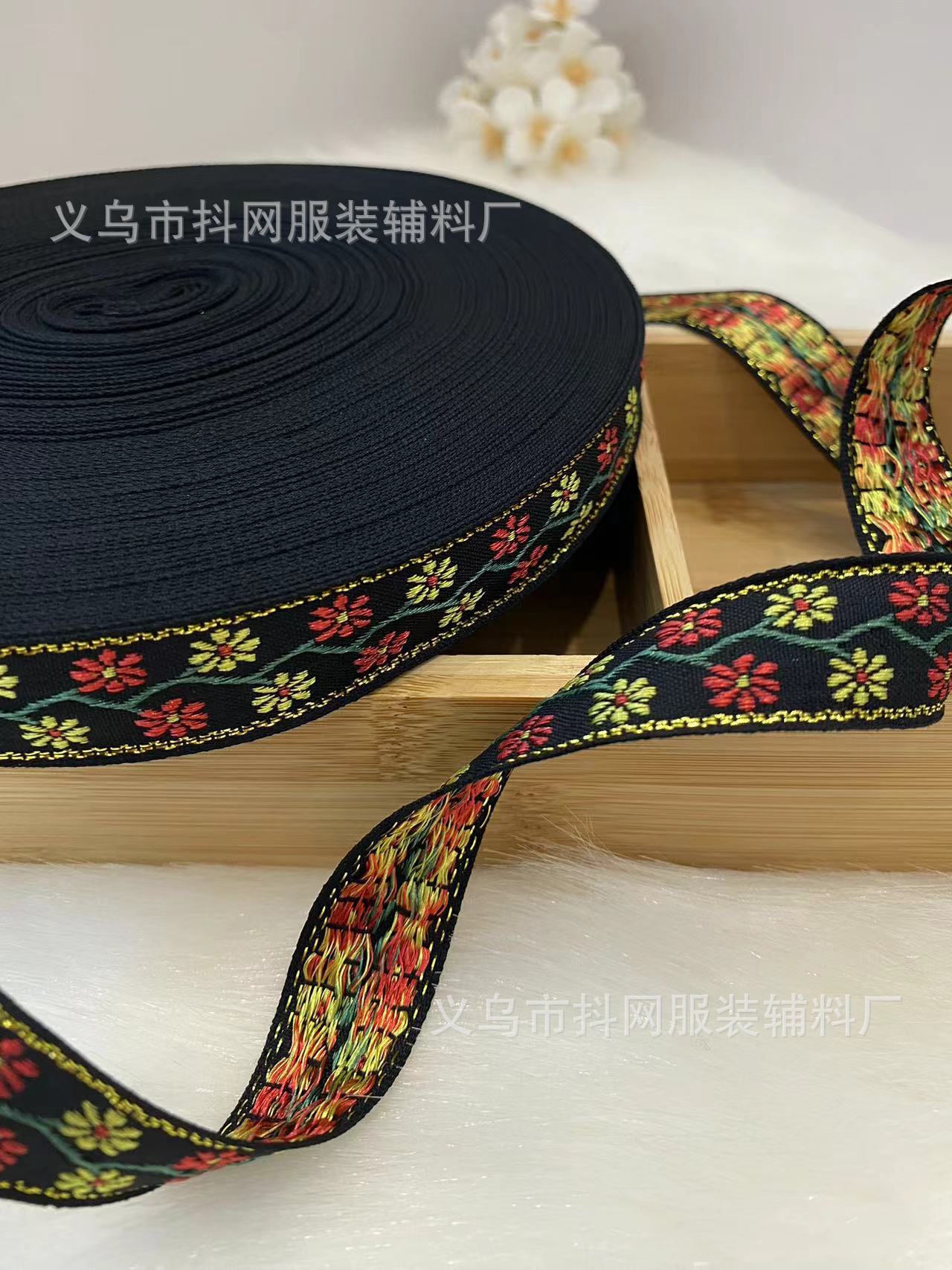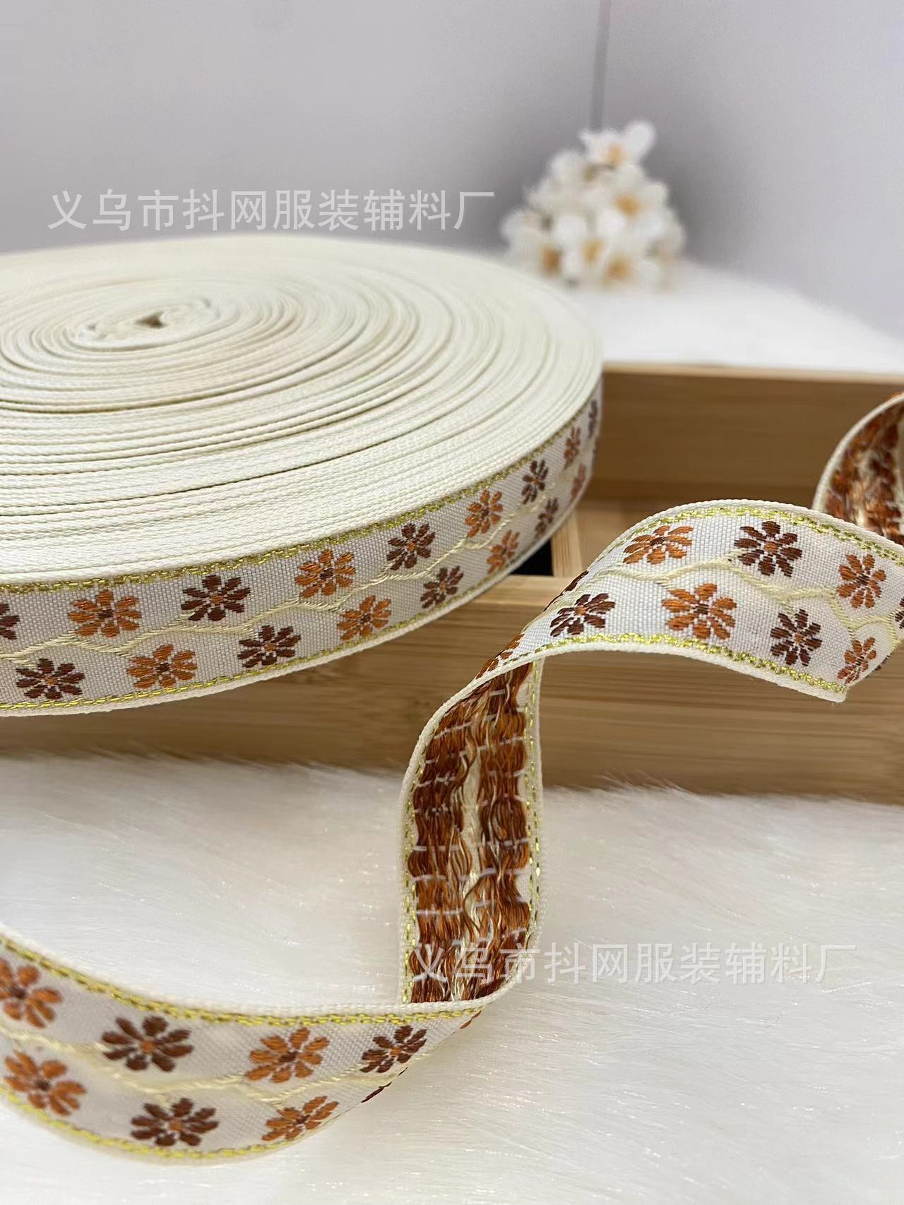 2.1cm small chanel-style gold silk jacquard embroidery webbing hair accessory gift box packaging tape performance costume accessories wholesale.