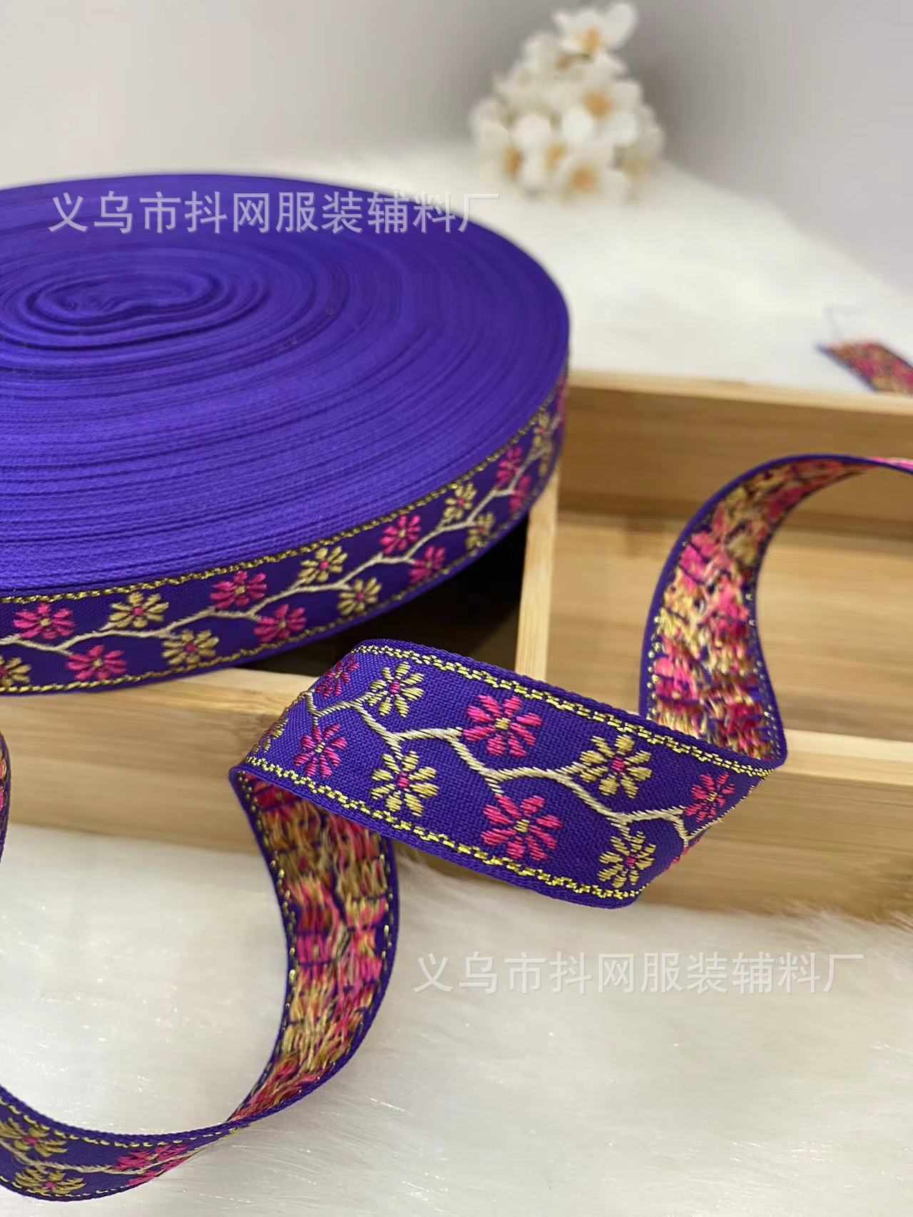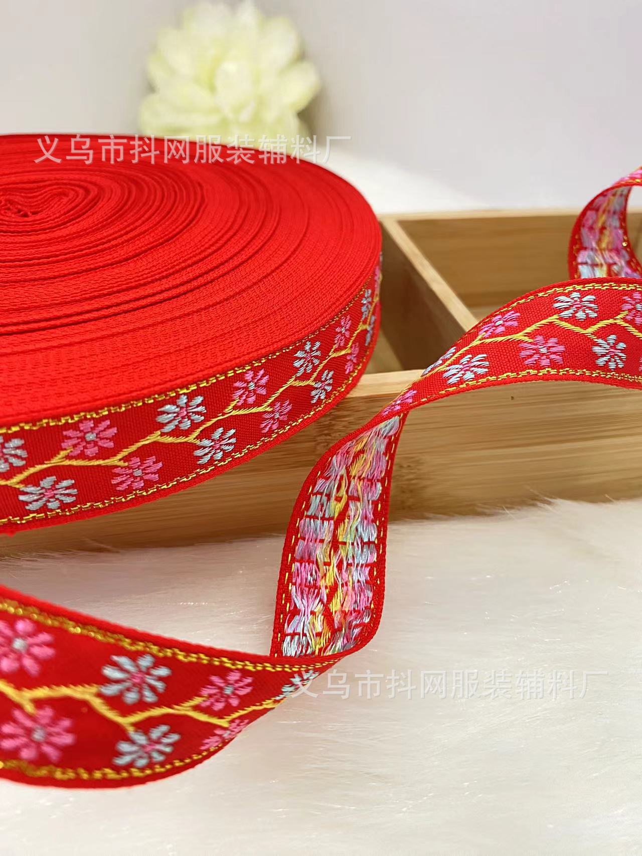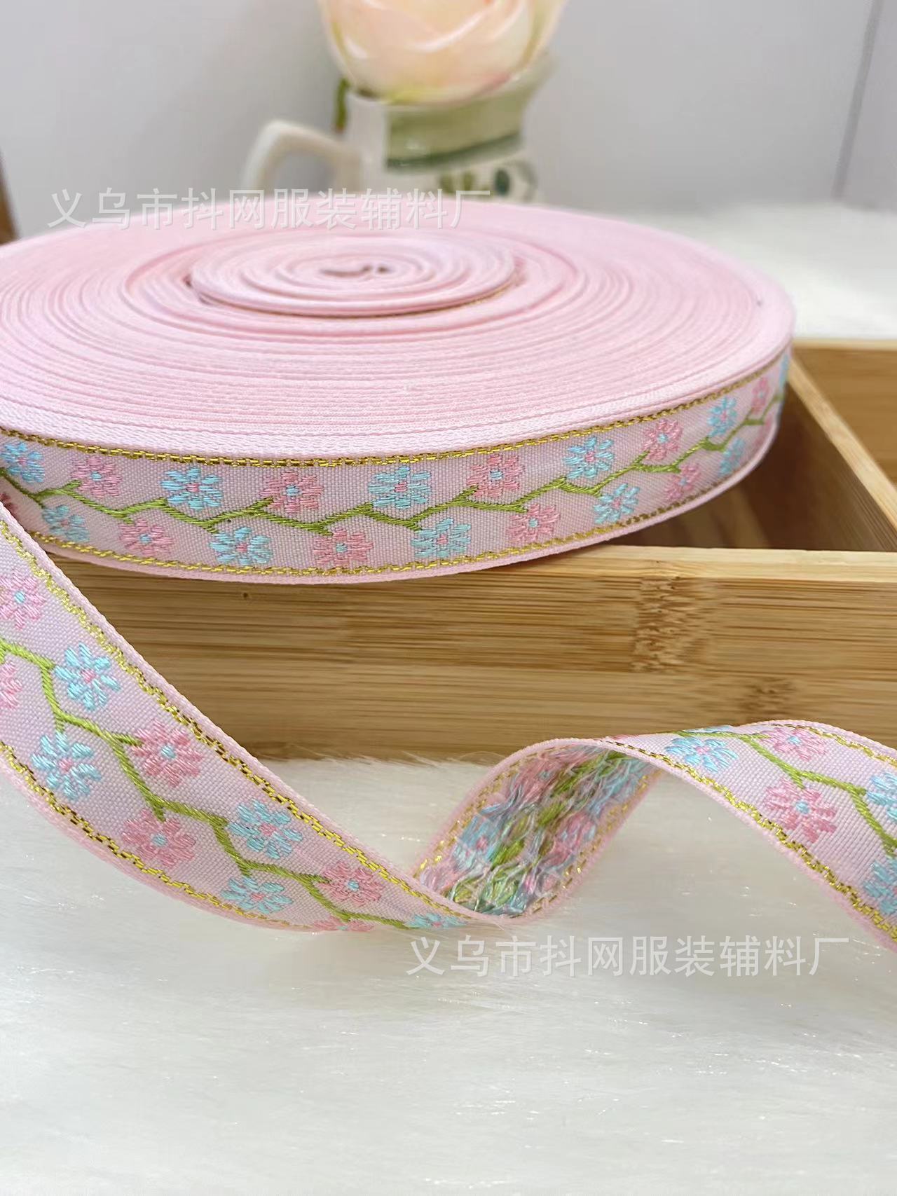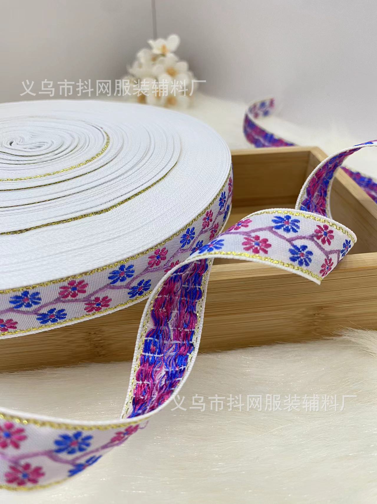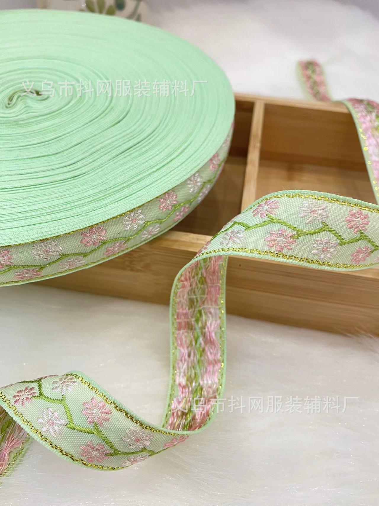 2.1cm small chanel-style gold silk jacquard embroidery webbing hair accessory gift box packaging tape performance costume accessories wholesale.