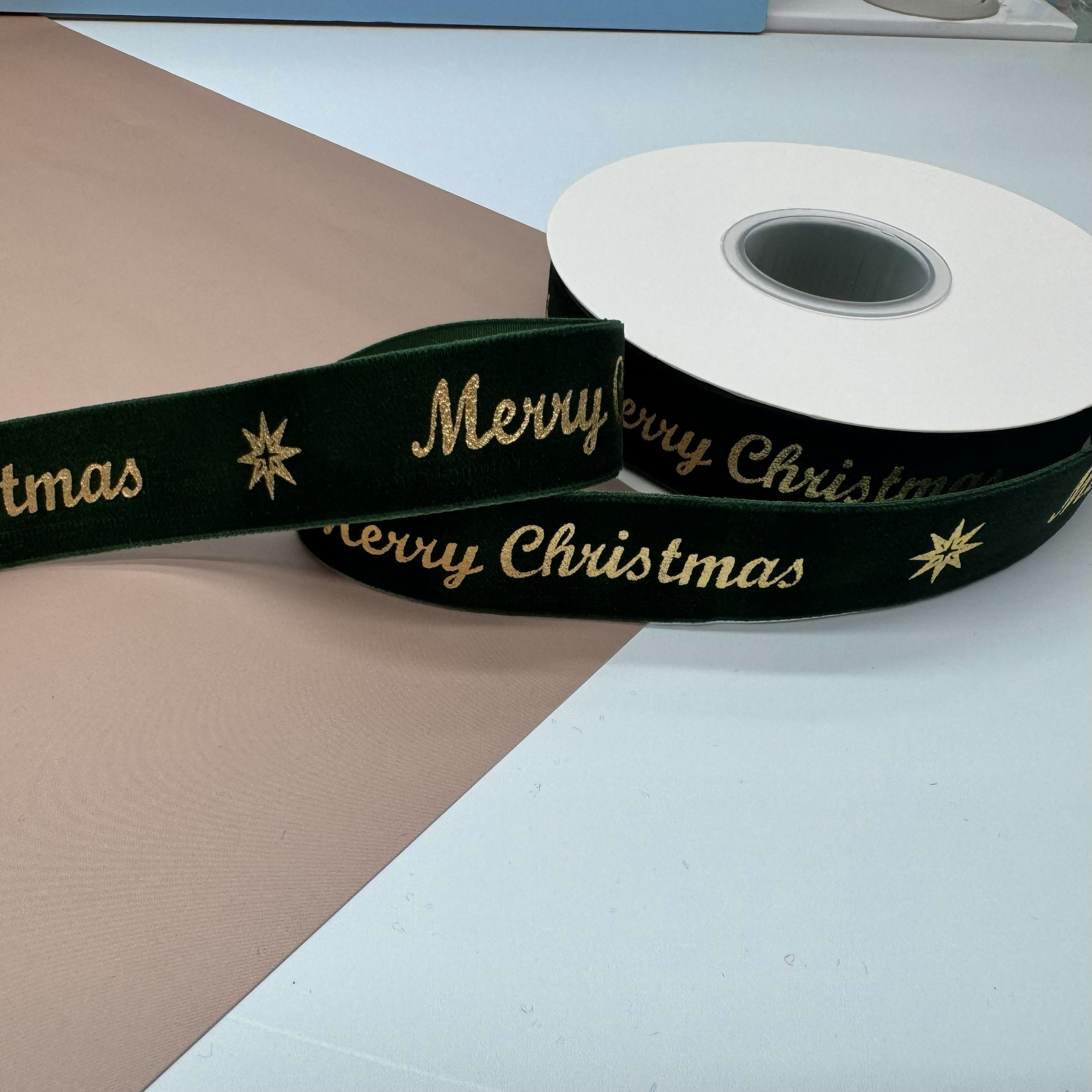 2.5 cm fleece ribbon, gold embossed best-selling Christmas ribbon, fleece ribbon, gift box decoration area, DIY handmade bow, woven ribbon, colorful ribbon