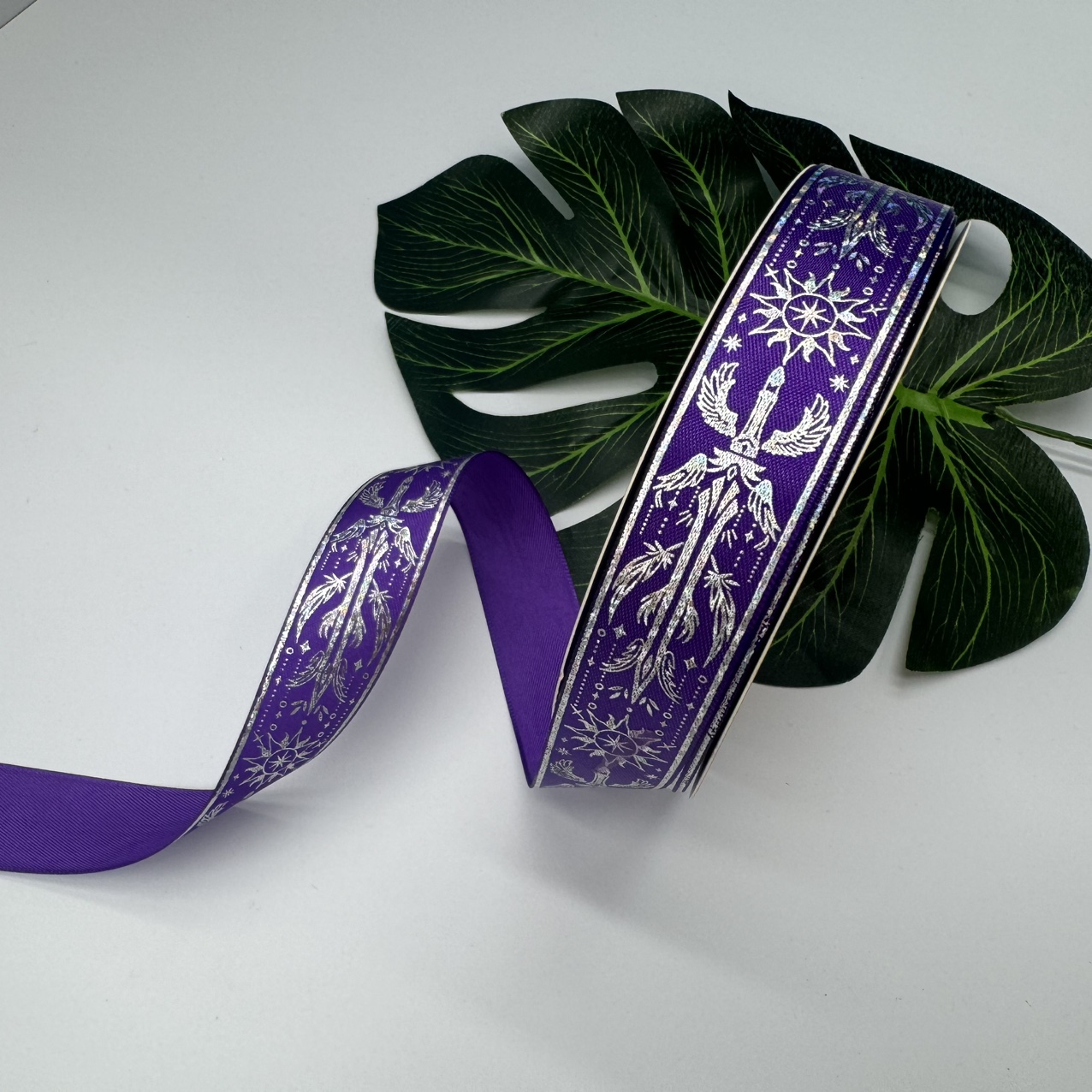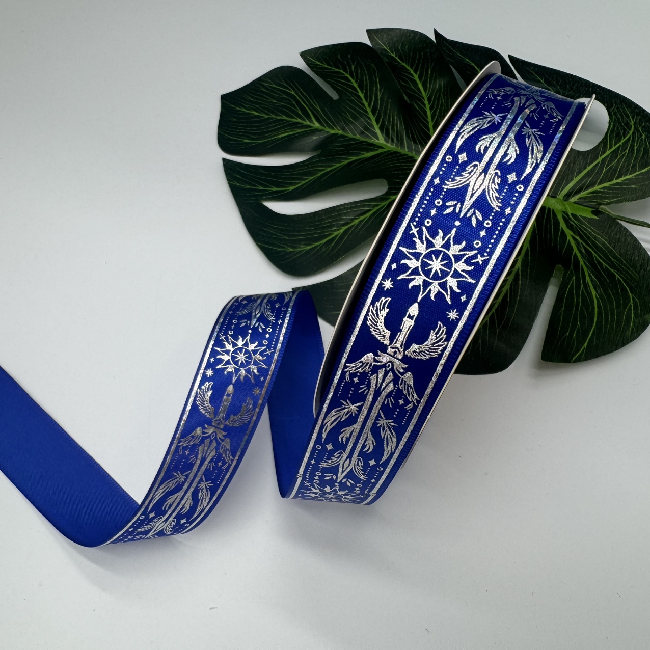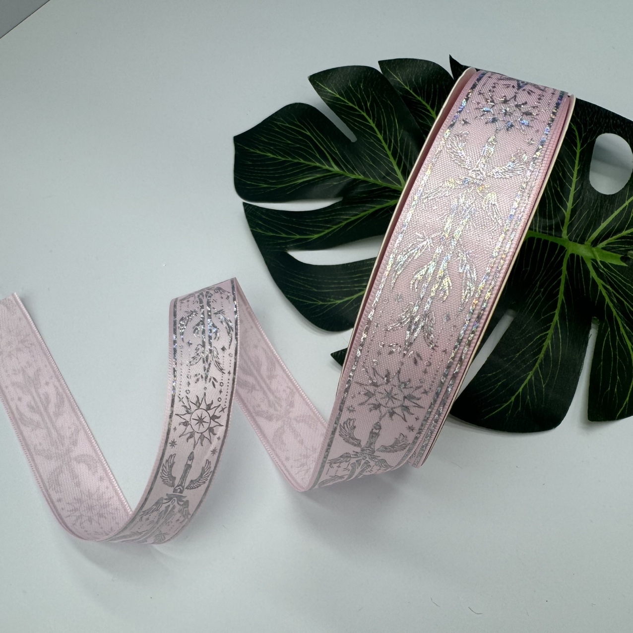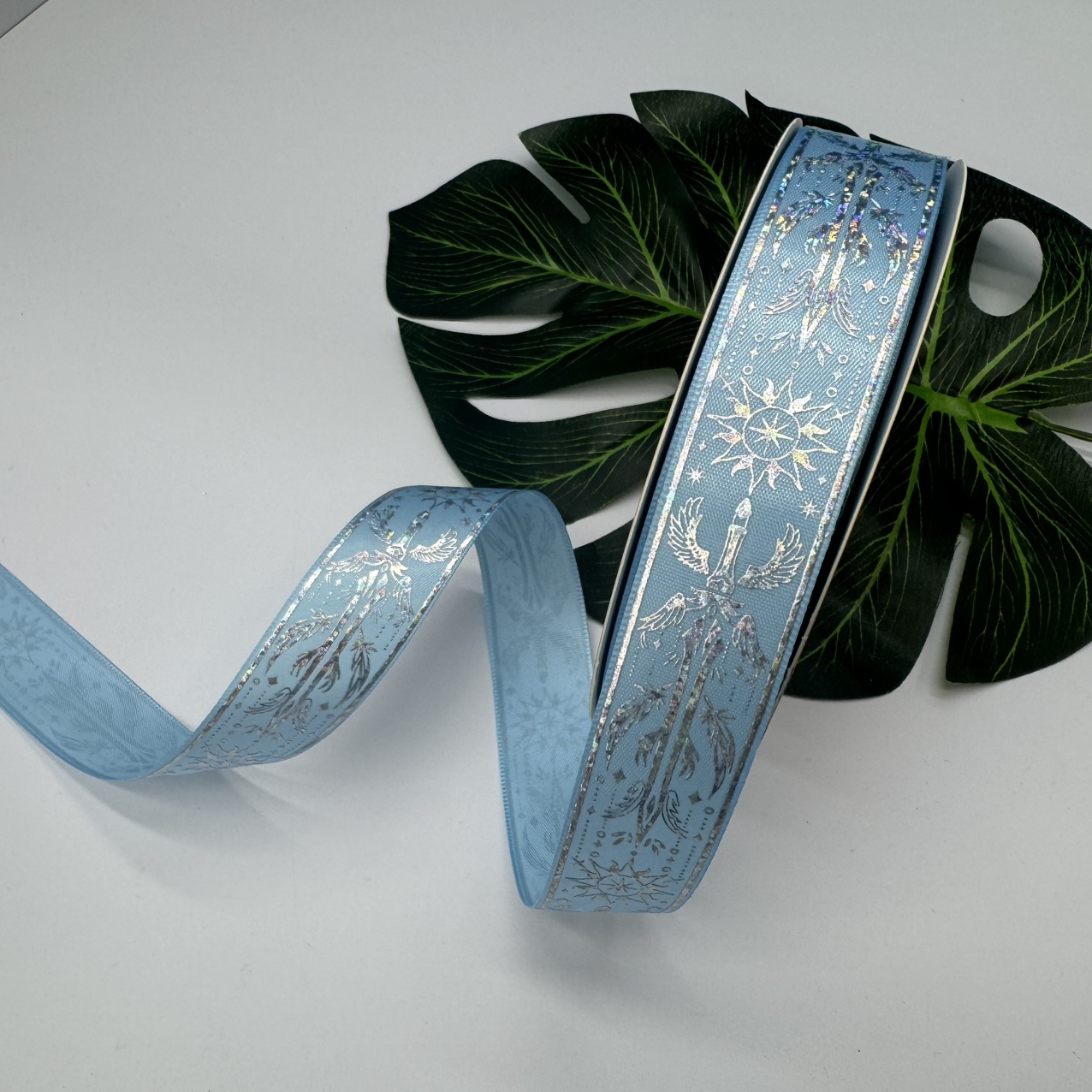 Product Name: Silver Hot Wire Strip. Product Specification: 2.5 cm Product packaging: 50 yards per roll. Product color, reference options. Product uses: Gift packaging, flower packaging, DIY handicrafts, bar trays, etc. Note: There may be joints in a roll of ribbon, but the length of each roll is full