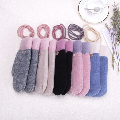 2020 New plush macaron halter-neck gloves, winter Korean style trendy mitten gloves, women's finger-hugging gloves