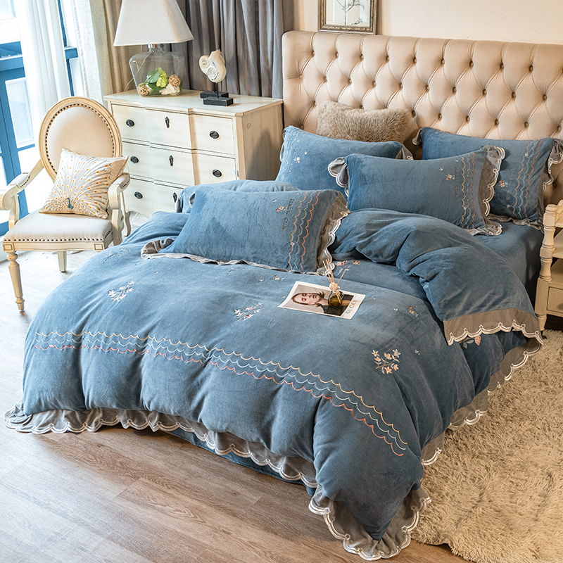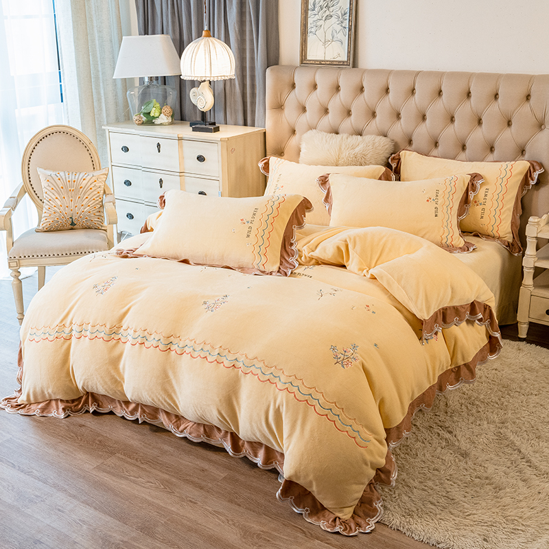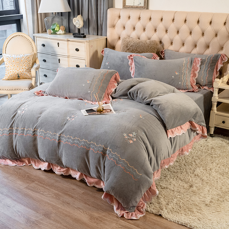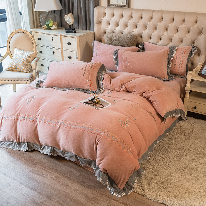 2021 Korean-style milk Fleece Four-piece Set, winter Coral fleece Fresh and thick Fleece Quilt cover, Warm Double-sided fleece