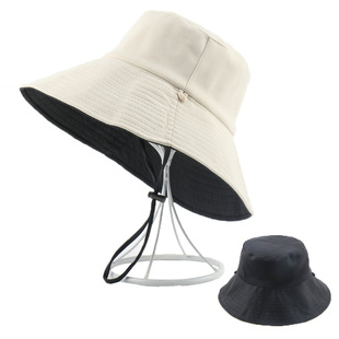 | 2020 Korean version of the popular fisherman's hat, Japanese style men's and women's UV protection double-sided wide-brimmed sun hat, solid-color face cover hat |