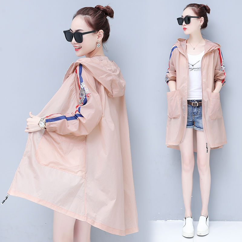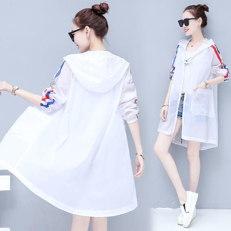 2021 new style sun-protective clothing for women, mid-length, versatile, UV-resistant, outdoor beach, large-sized light jacket, loose version