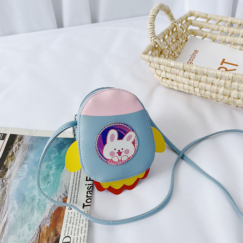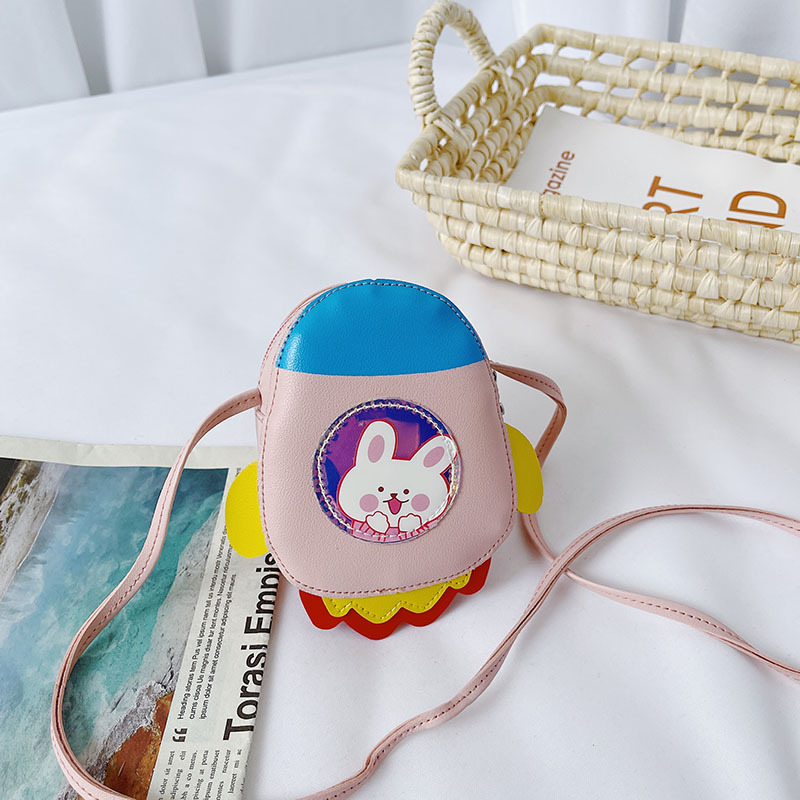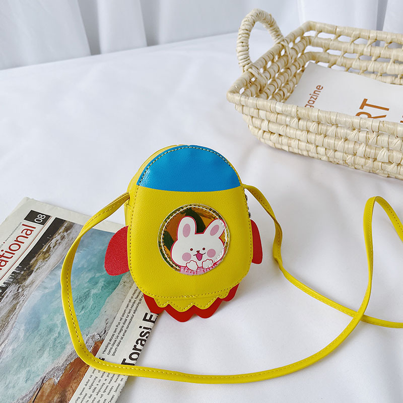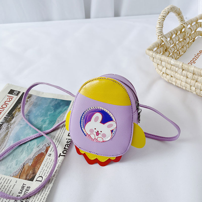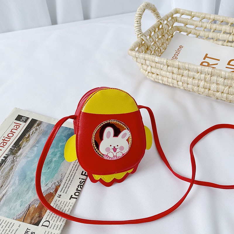 2021 Summer New Children's bag, candy-colored PU single-shoulder small bag, cartoon little rocket, girls' crossbody accessories, coin purse