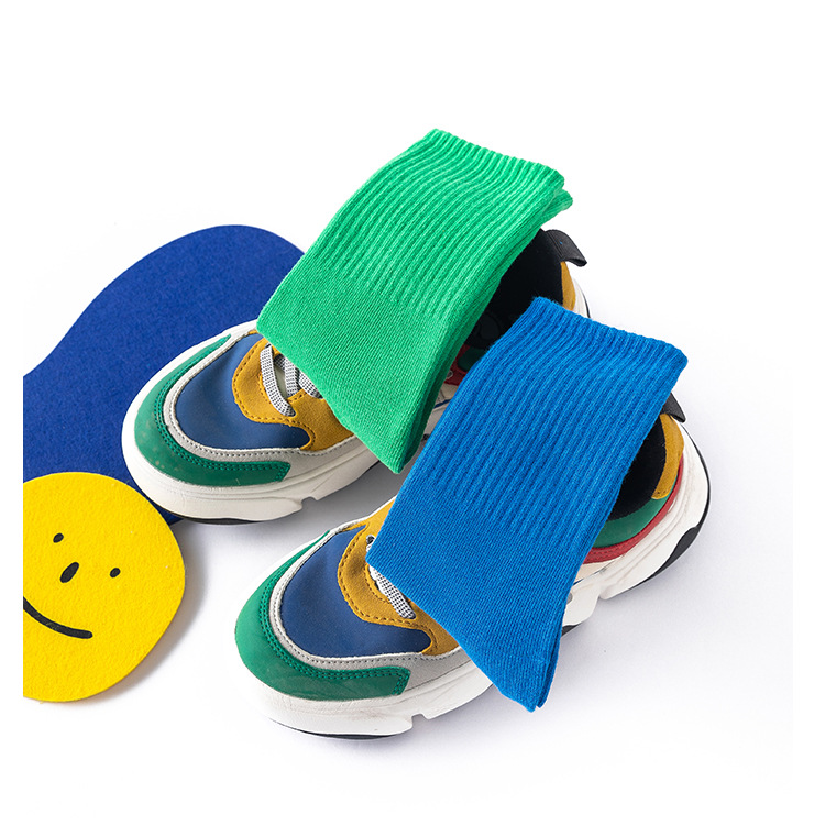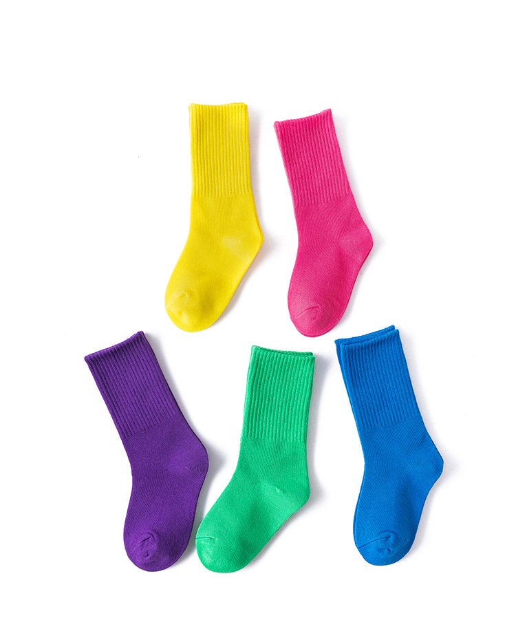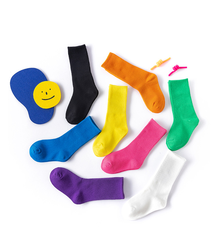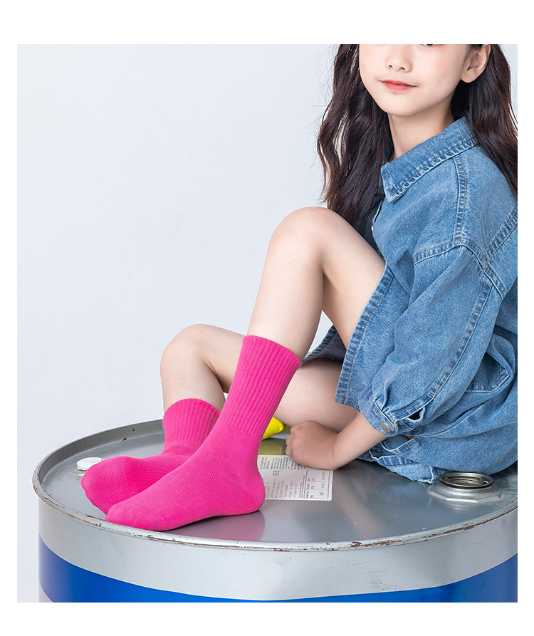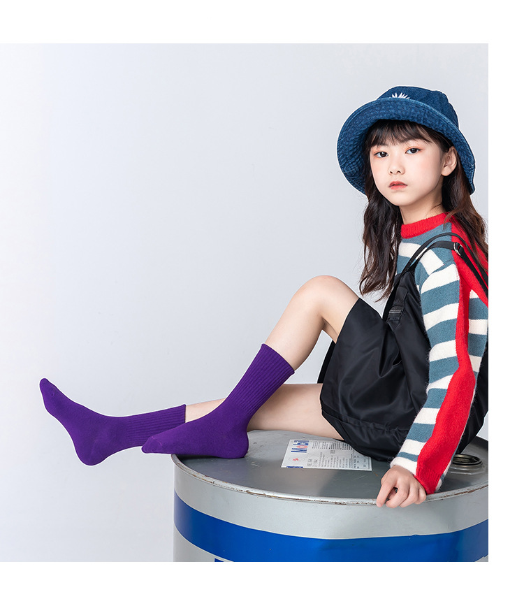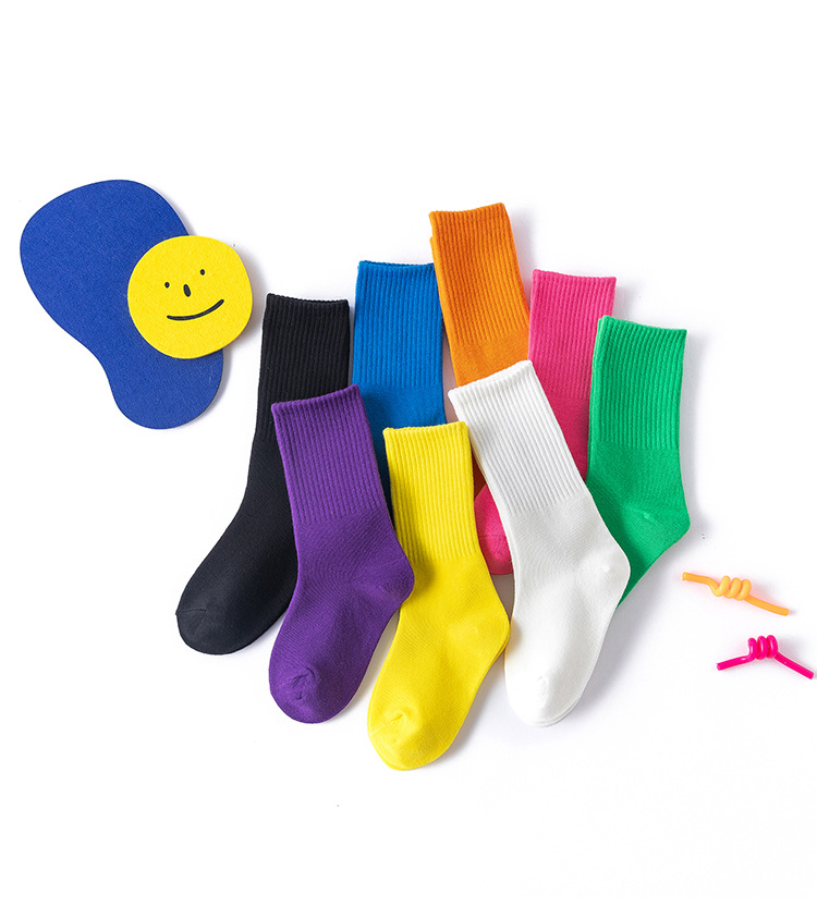 2022 Autumn and winter children's socks, solid color girls' socks, high rubber band sports cotton socks, breathable manufacturer's consignment