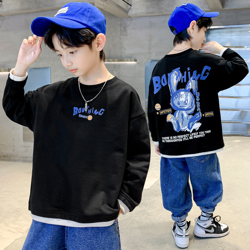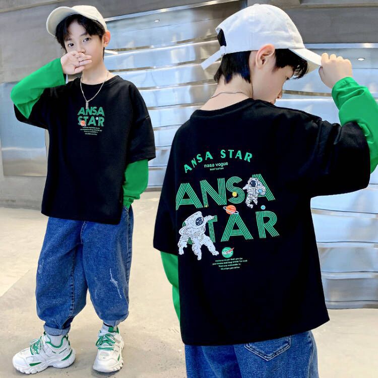 2022 Autumn Boys' long-sleeved T-shirt, Cotton casual, gradient hoodie, Primary School students' autumn base layer 8
