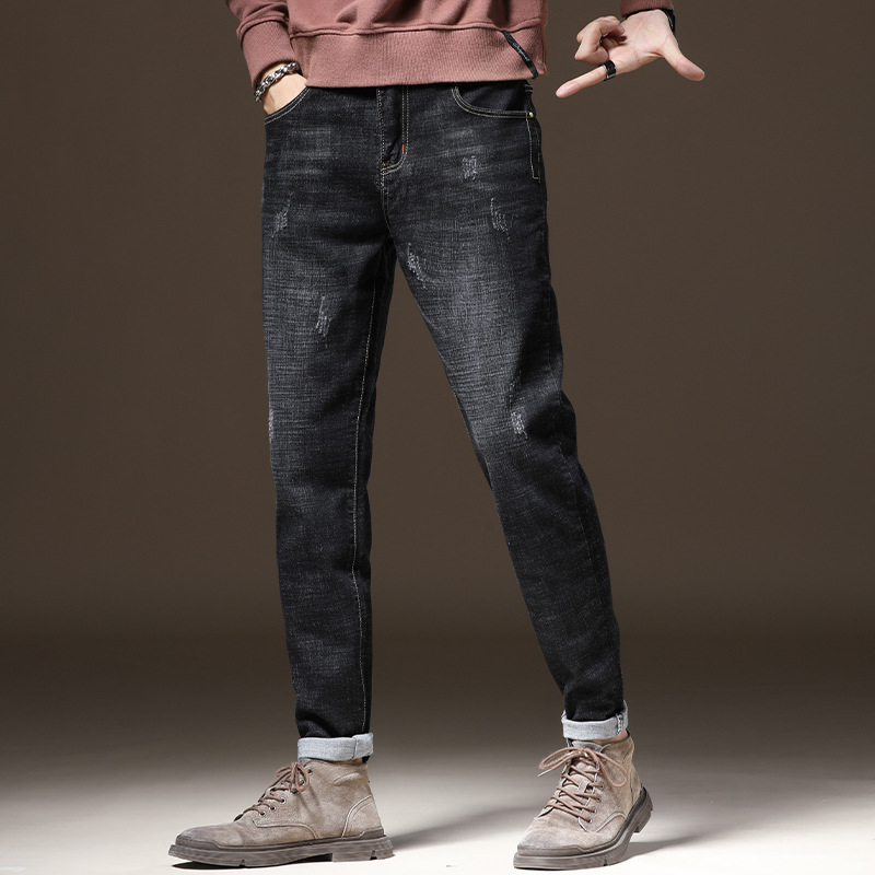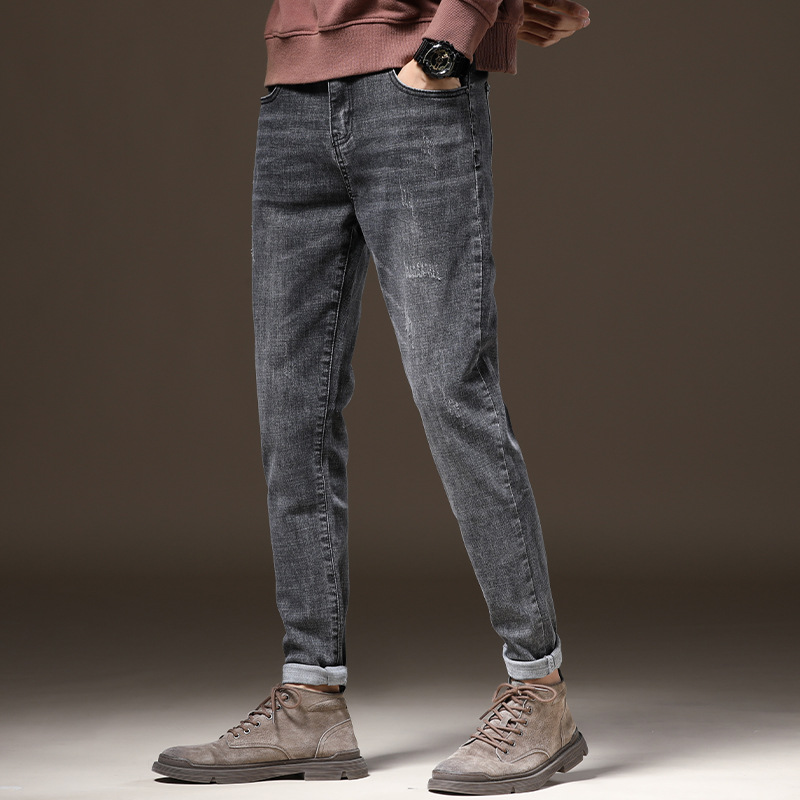2022 Autumn new style jeans, trendy brand long pants, men's Korean-style trendy casual jeans, men's slim-fitting skinny pants