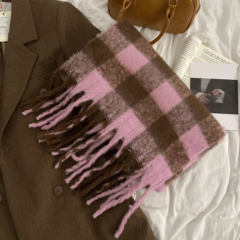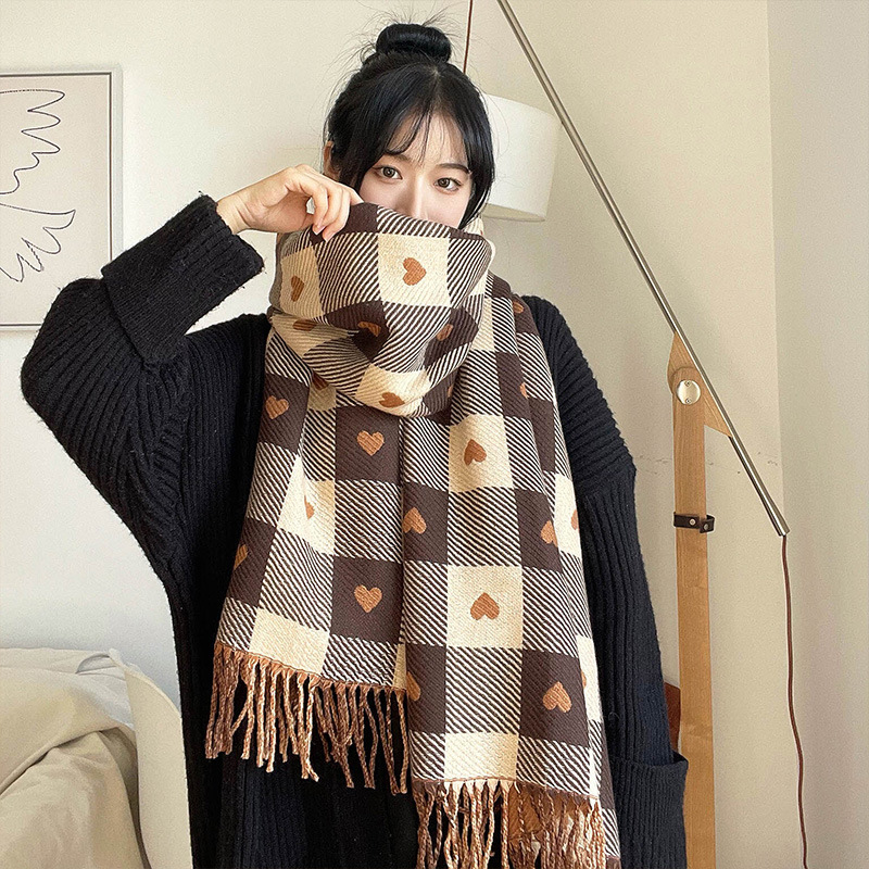 15# Faux Cashmere Khaki checkered Heart [Thickened and fleece