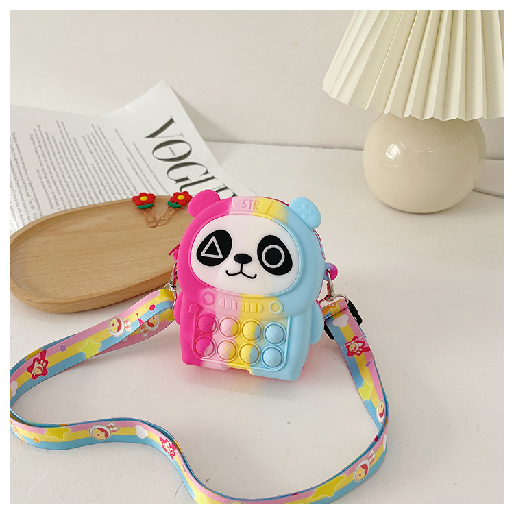 2022 Cartoon Baby Panda Coin Purse Bubble Silicone Children's Crossbody Bag, Colorful Lollipop Children's Bag wholesale