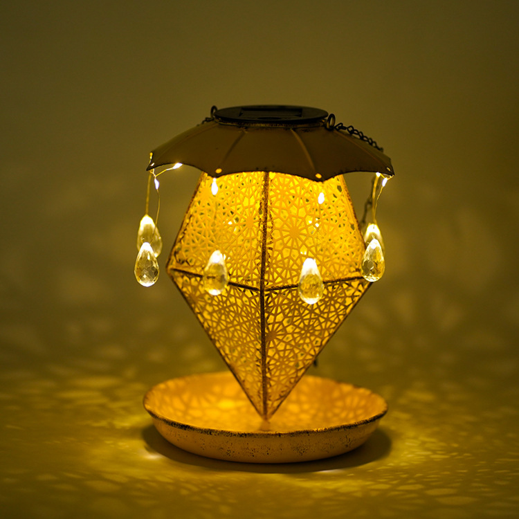 2022 Cross-border new products: ironwork solar lamps, hollowed-out brick and stone umbrellas, bird feeders, courtyard decoration, dynamic garden lamps