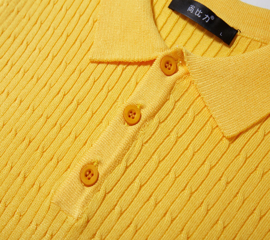 2022 Japanese and South Korean new men's summer style POLO collar knitted sweater, blue short-sleeved slim business casual style