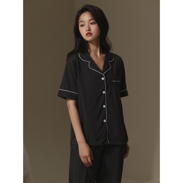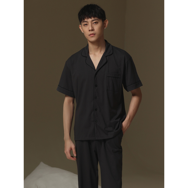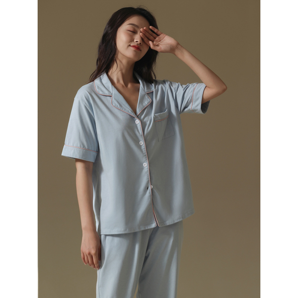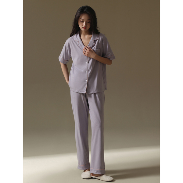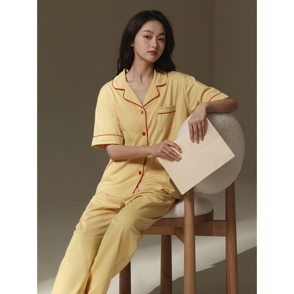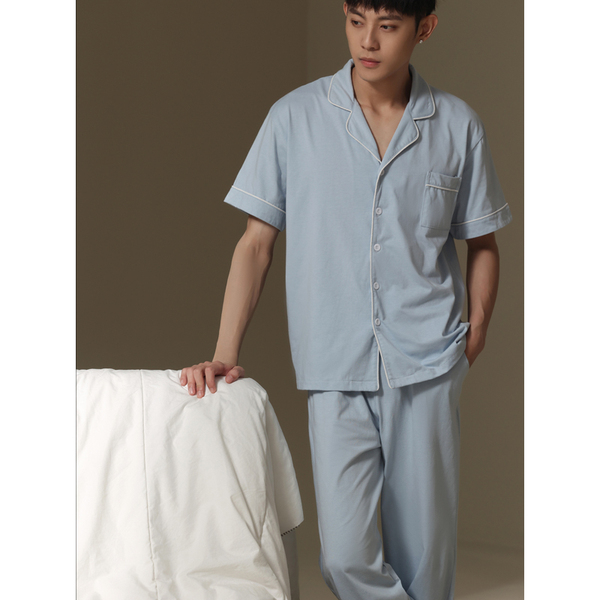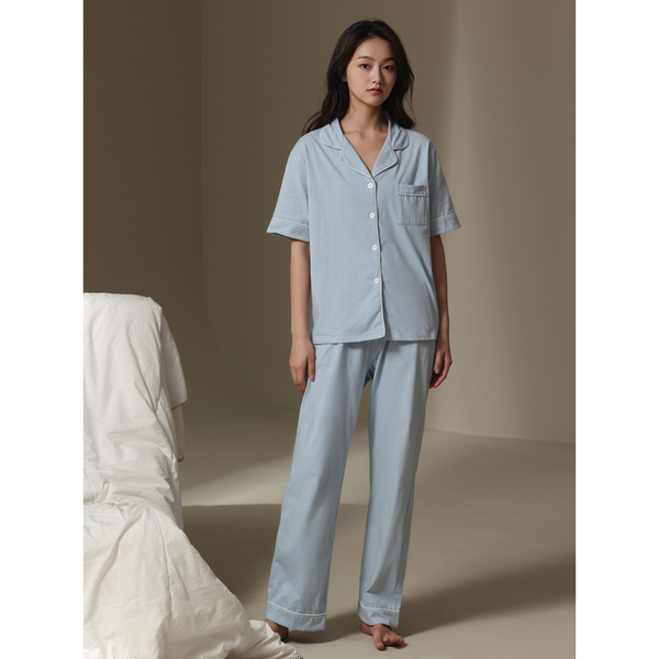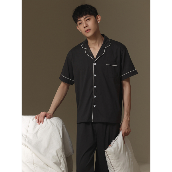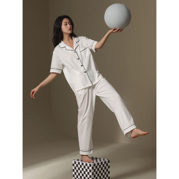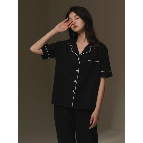 2022 New couple pajamas for men and women summer short-sleeved shirts and long pants, thin and high-end Muji style home wear sets