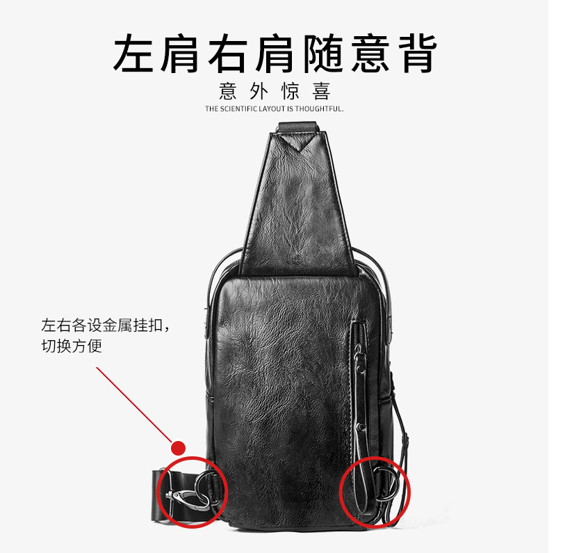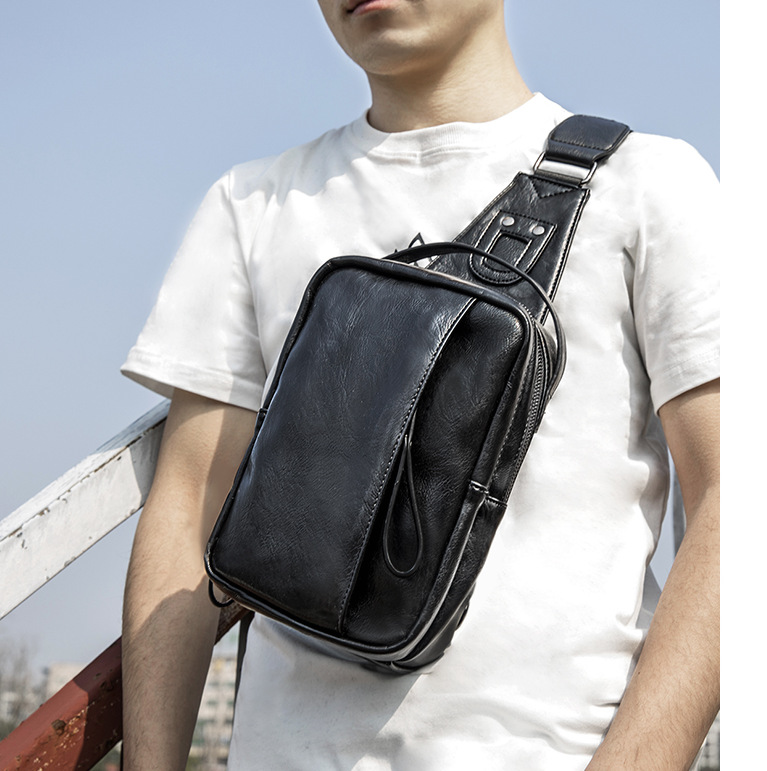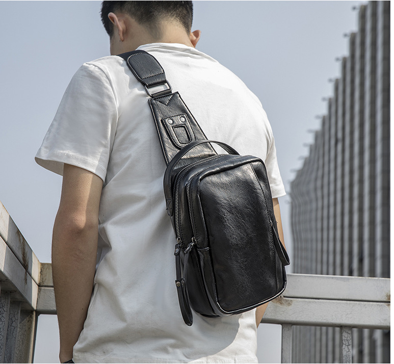 2022 New crossbody bag, men's chest bag, trendy single-shoulder bag, casual functional and fashionable PU bag, men's handbag