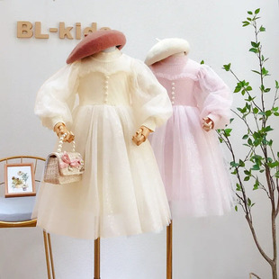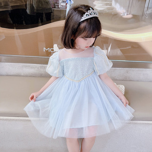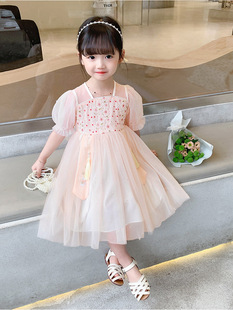 2022 New style children's little girl summer dress, Korean-style puffed sleeve princess dress, girls' dress