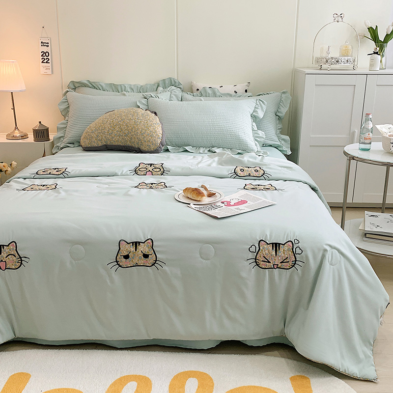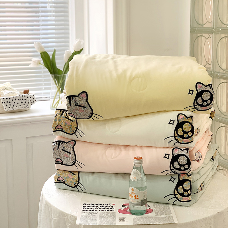 2022 Summer naked sleep washed cotton air-conditioned quilt, kitten patch embroidery summer quilt, summer cool quilt, air-conditioned quilt can be machine washed