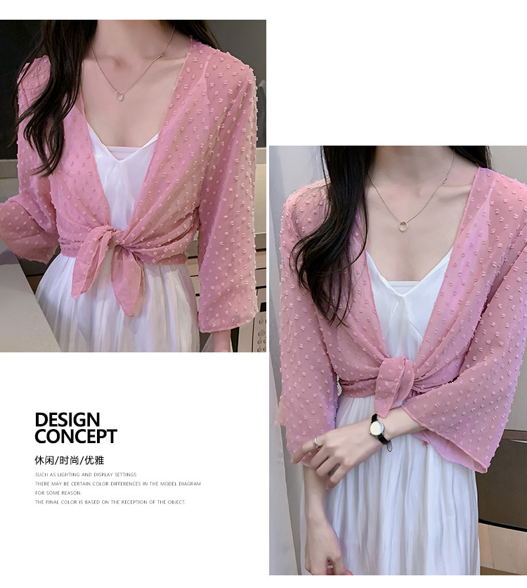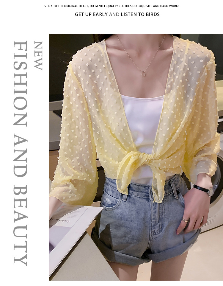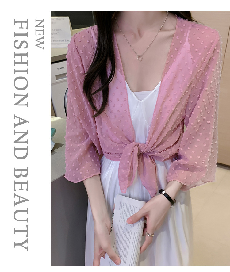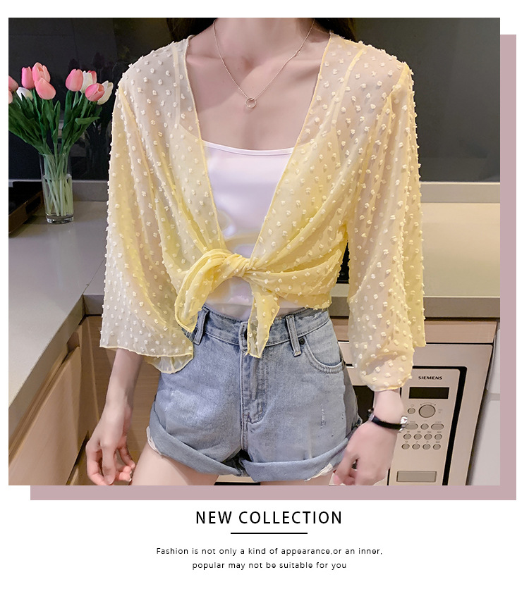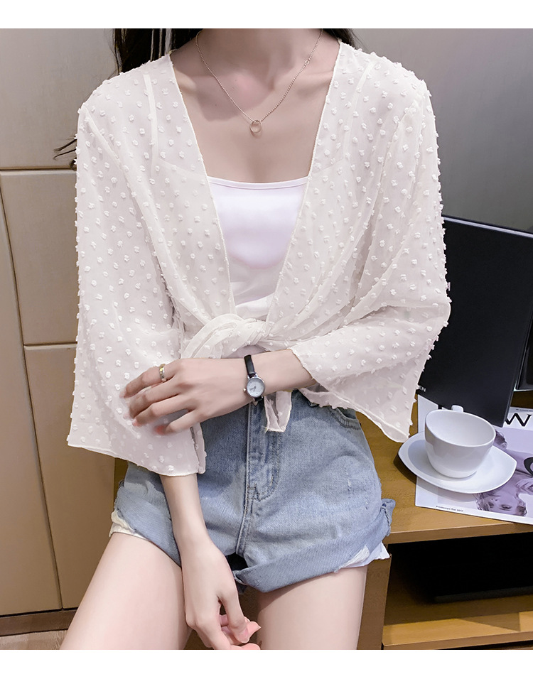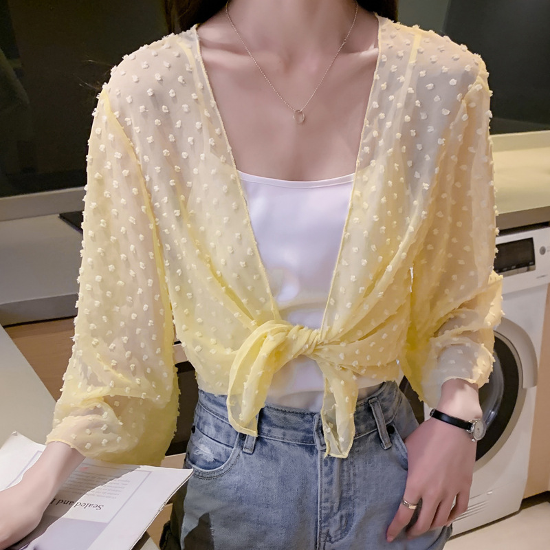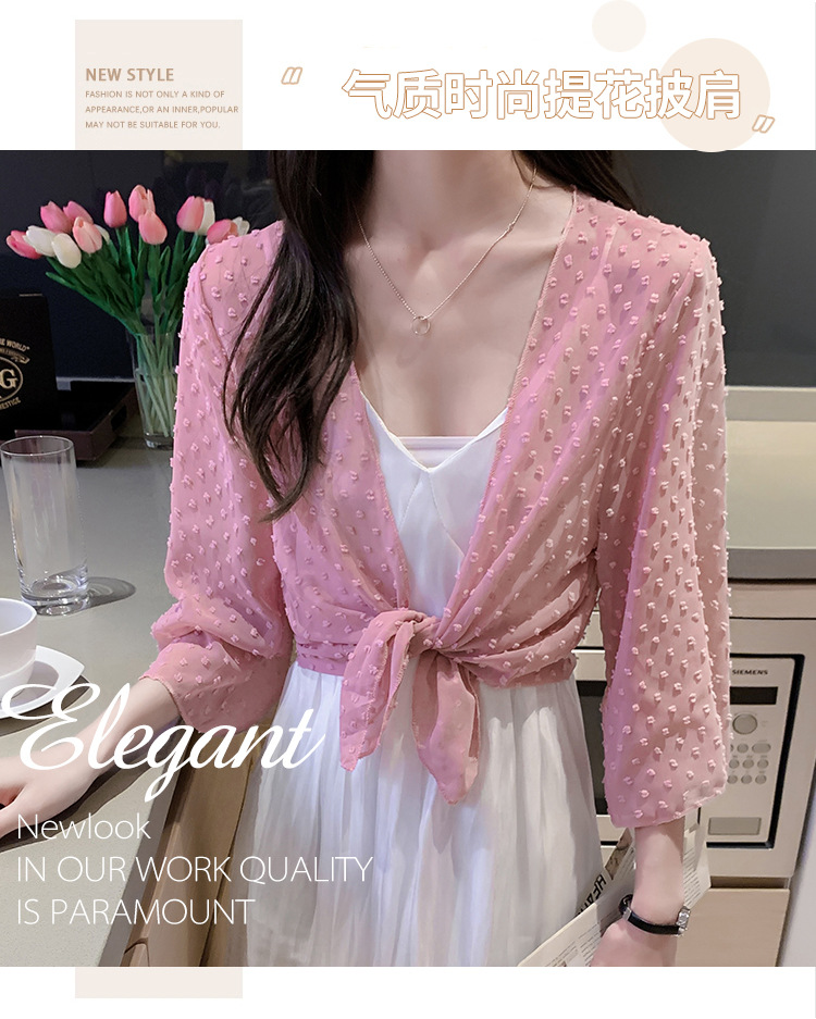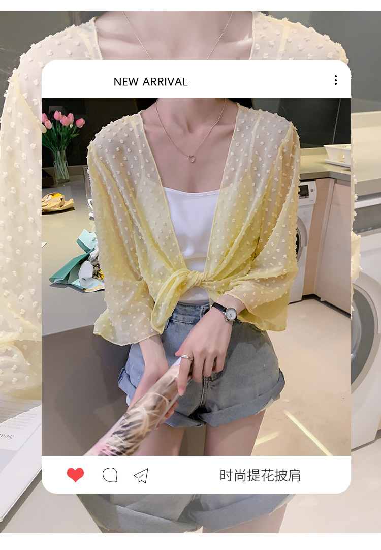 2022 Summer New Korean-style fashionable loose thin short coat, women's long-sleeved chiffon shirt, sun-protective clothing, small shawl