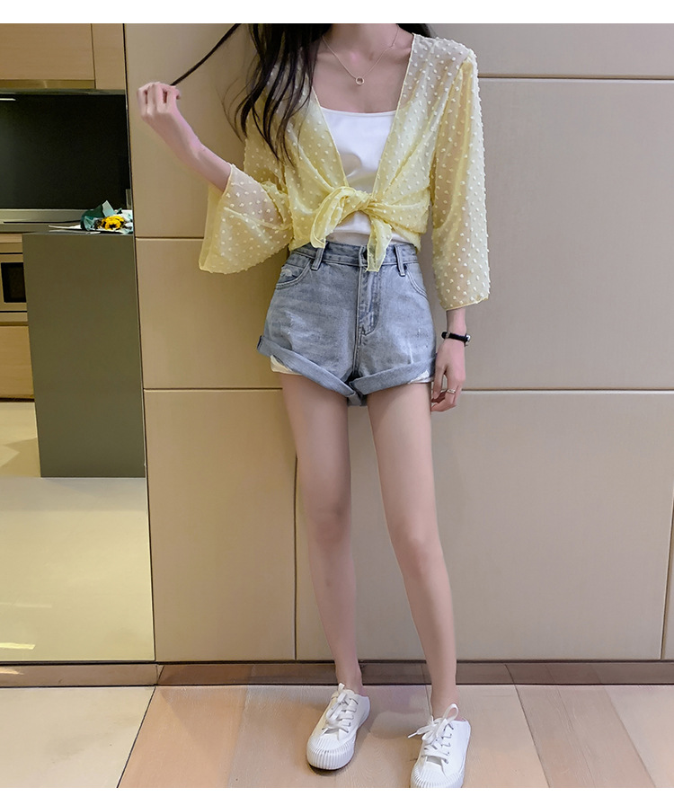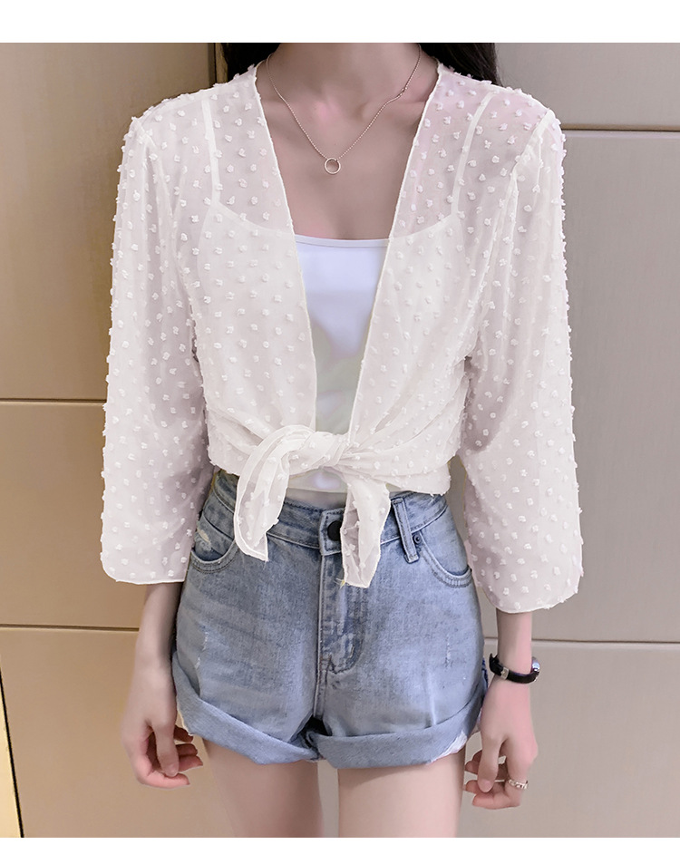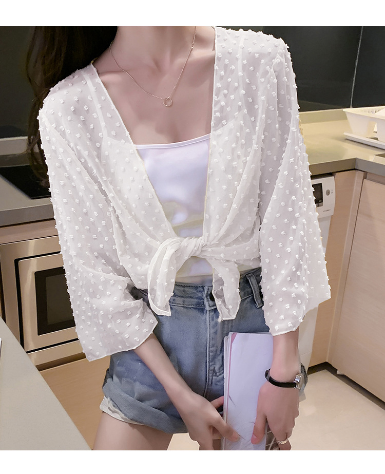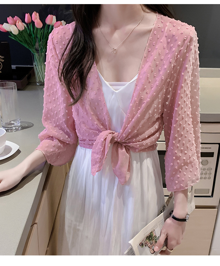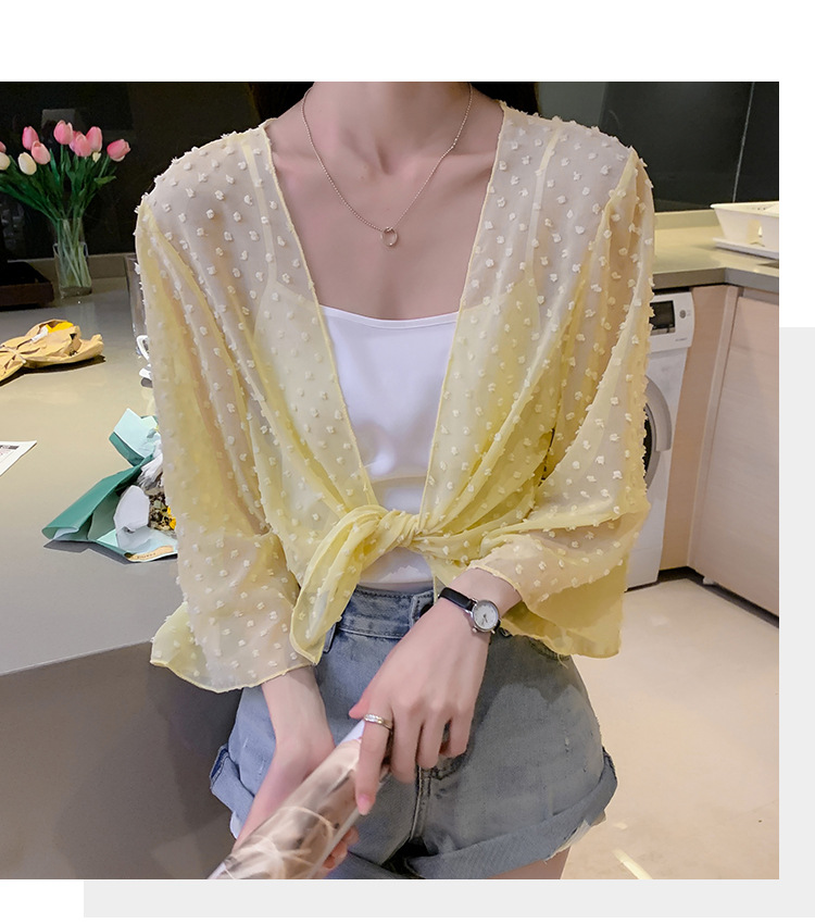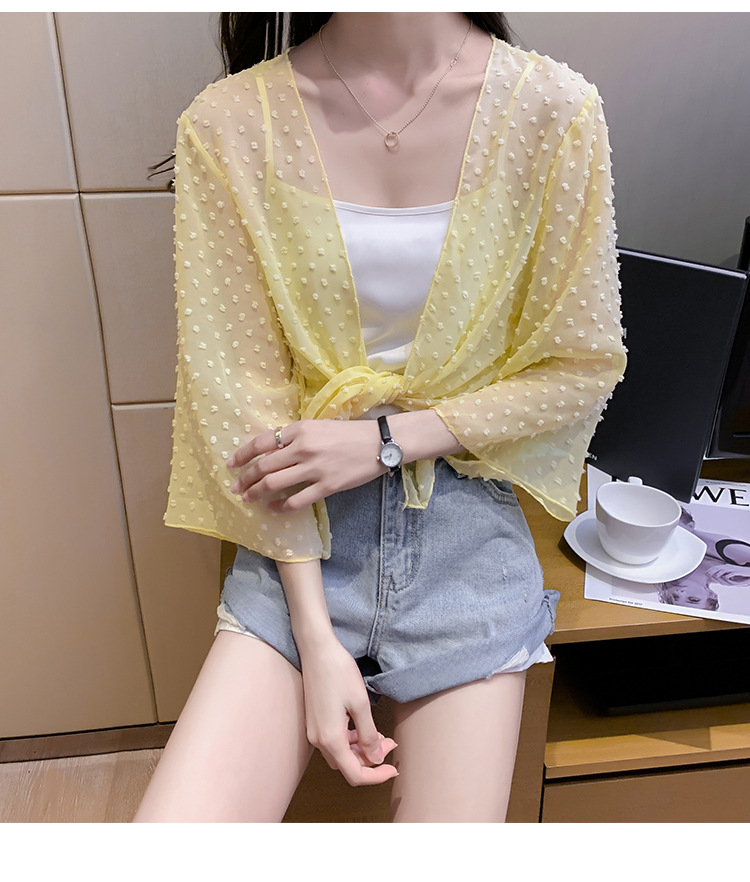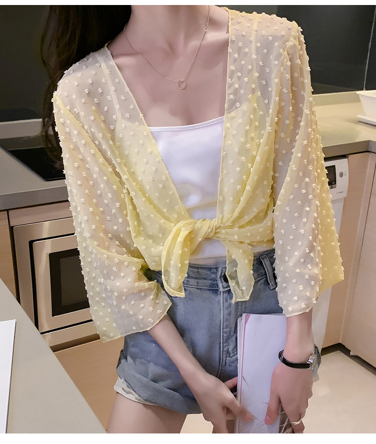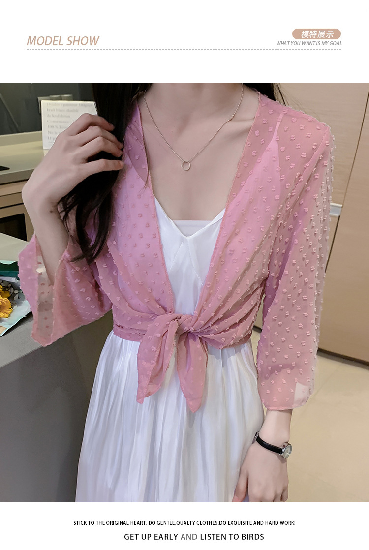 2022 Summer New Korean-style fashionable loose thin short coat, women's long-sleeved chiffon shirt, sun-protective clothing, small shawl