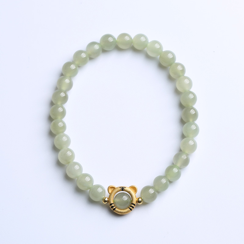 2022 Tiger Year Tiger Hetian Jade Bracelet 6MM, Praying for the tiger's vigor and vitality, Tiger Head Hetian Jade bracelet accessory gift
