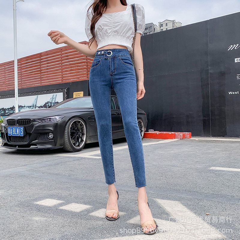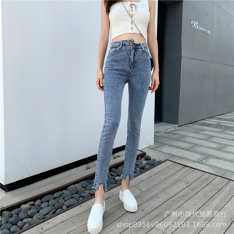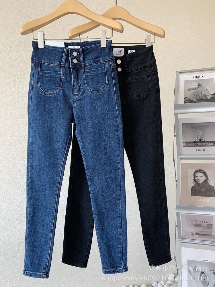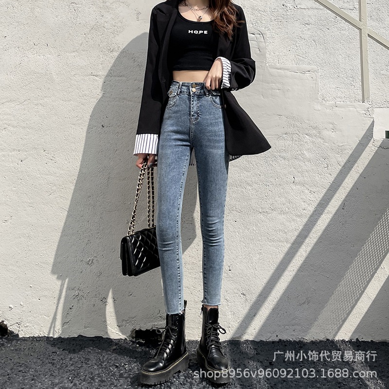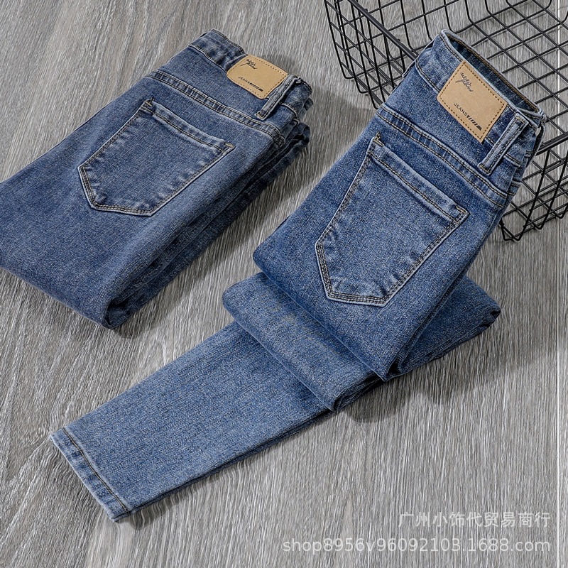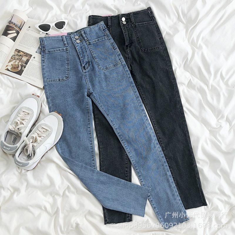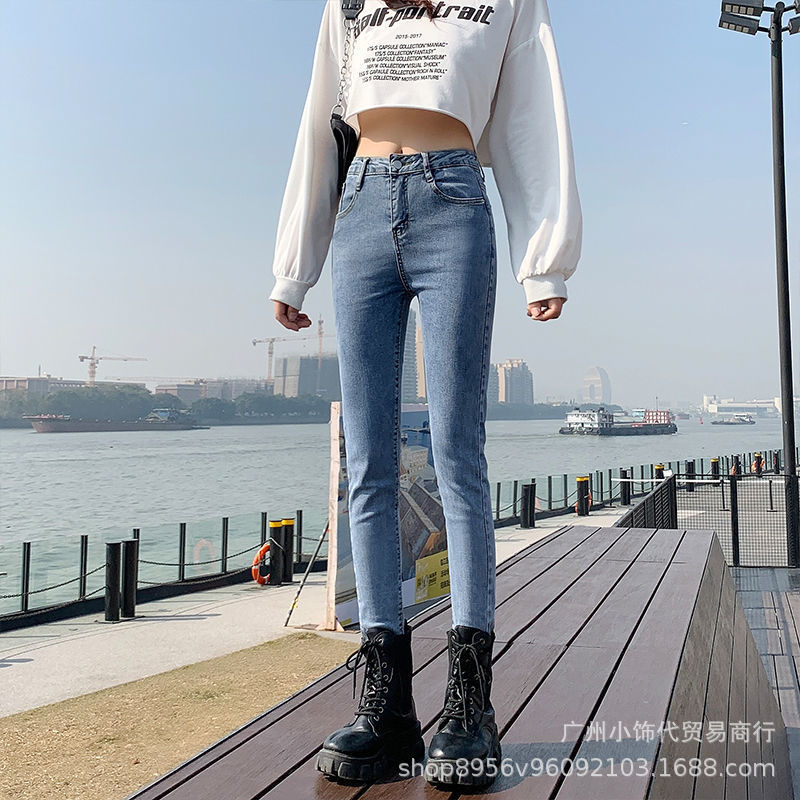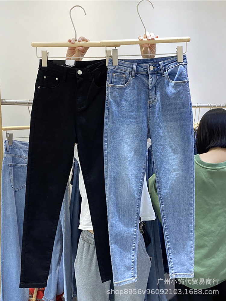 2022 Trendy Korean-style women's denim skinny, high-waisted, slimming stretch jeans from street vendors for wholesale