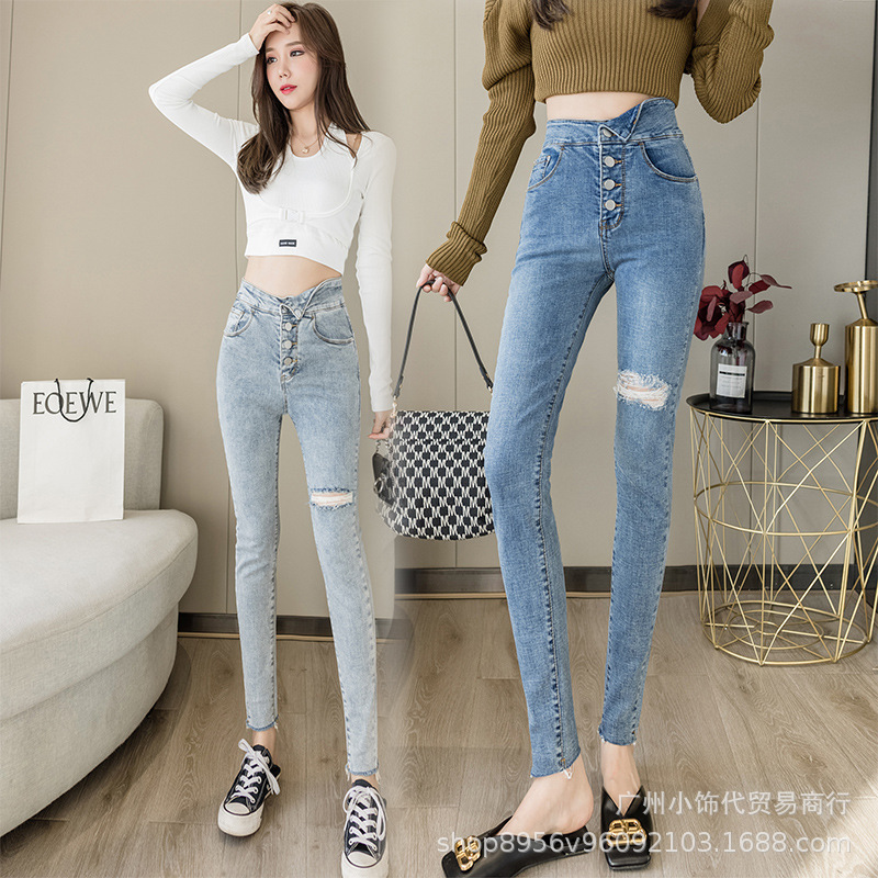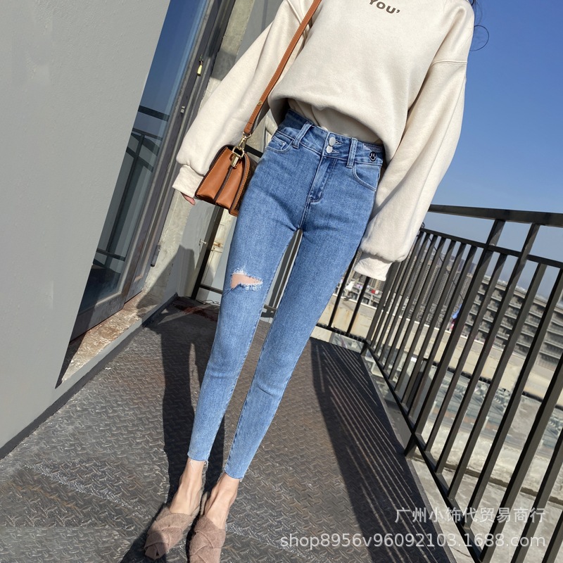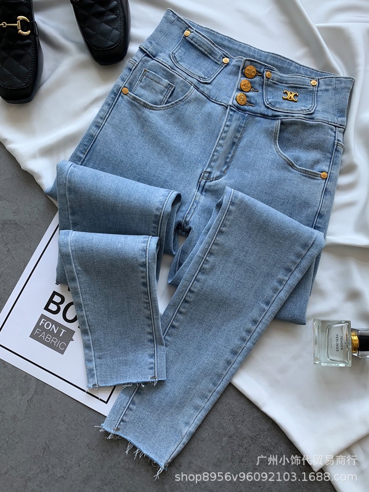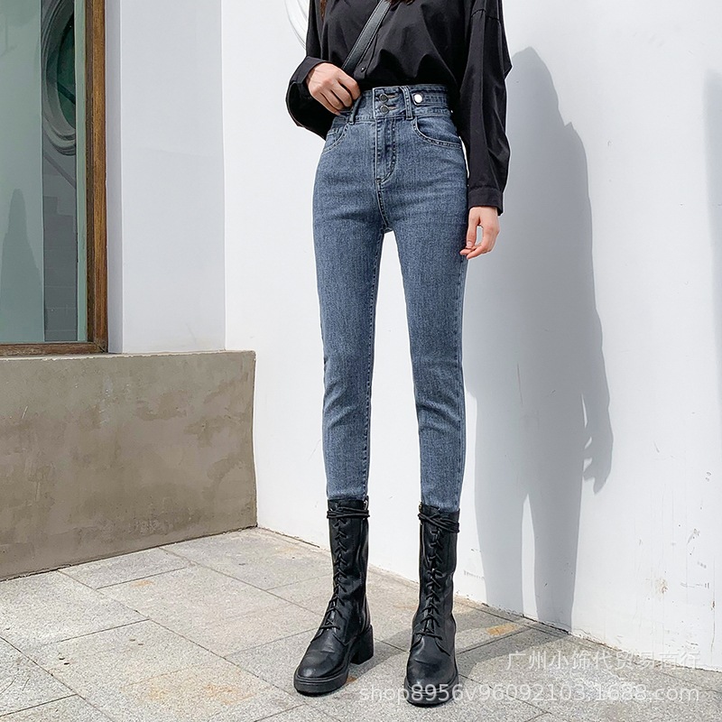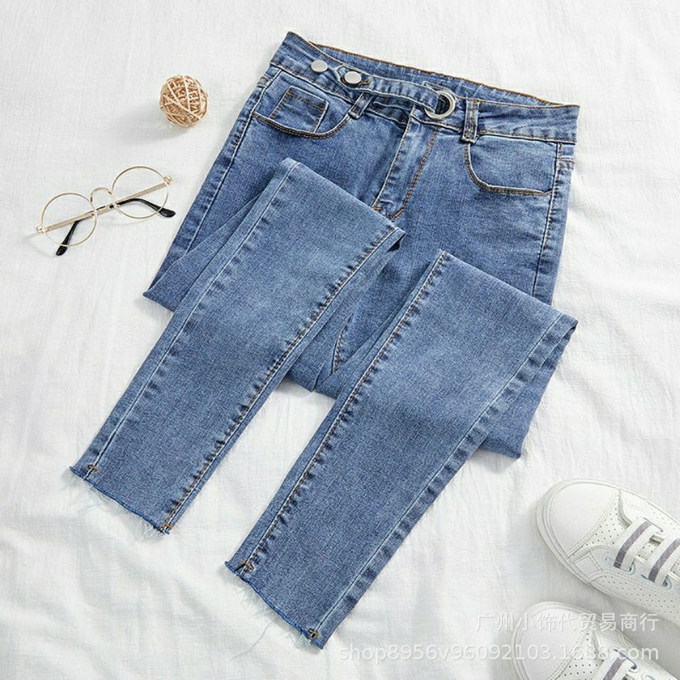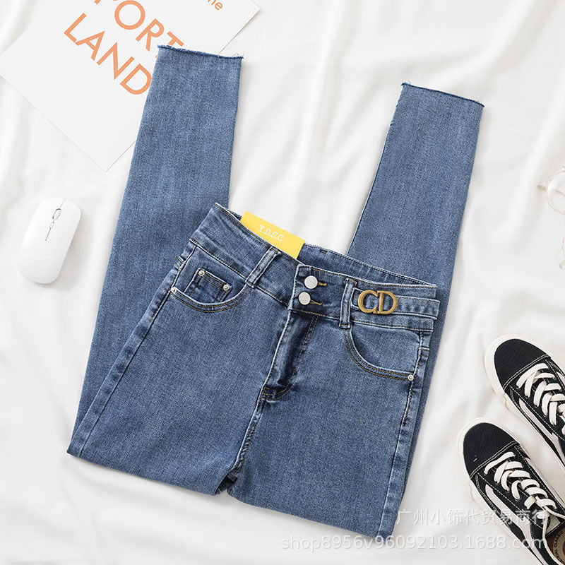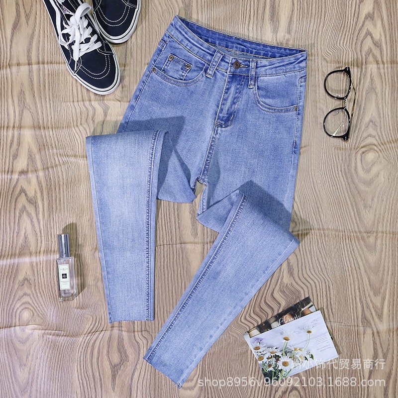 2022 Trendy Korean-style women's denim skinny, high-waisted, slimming stretch jeans from street vendors for wholesale