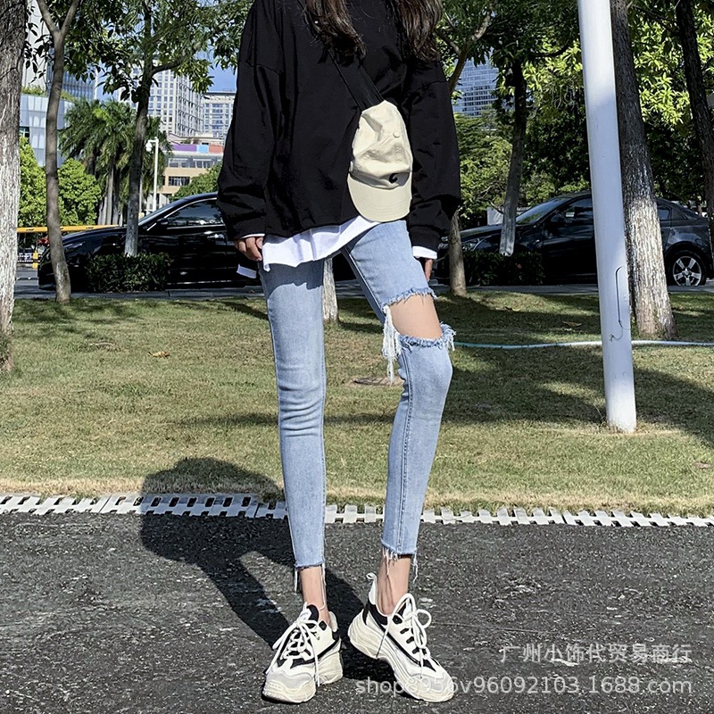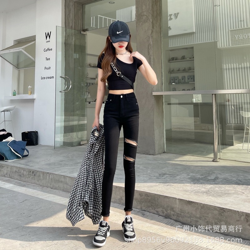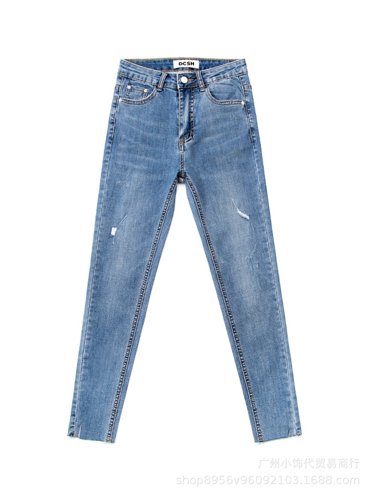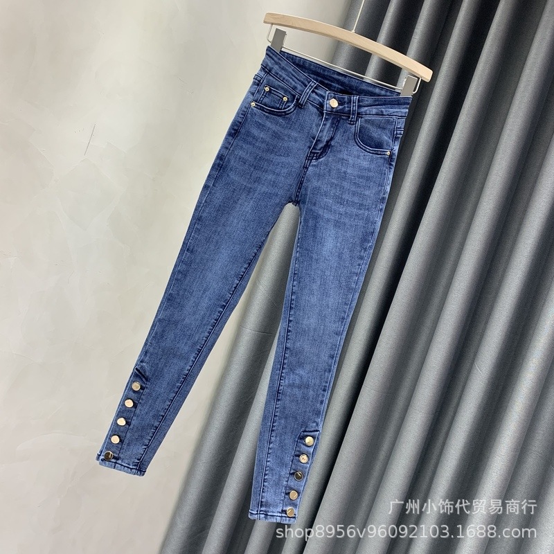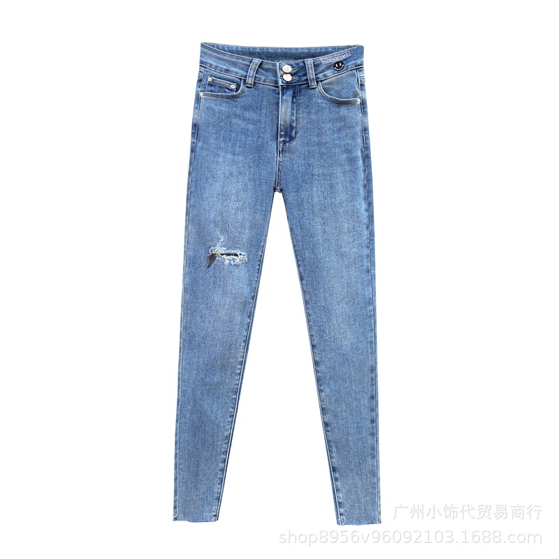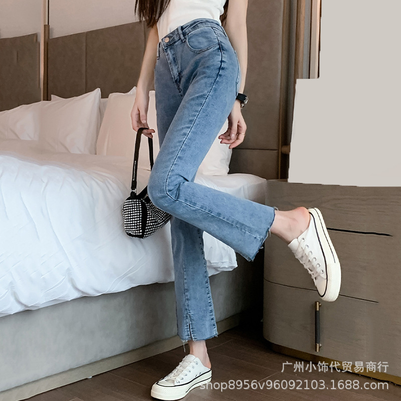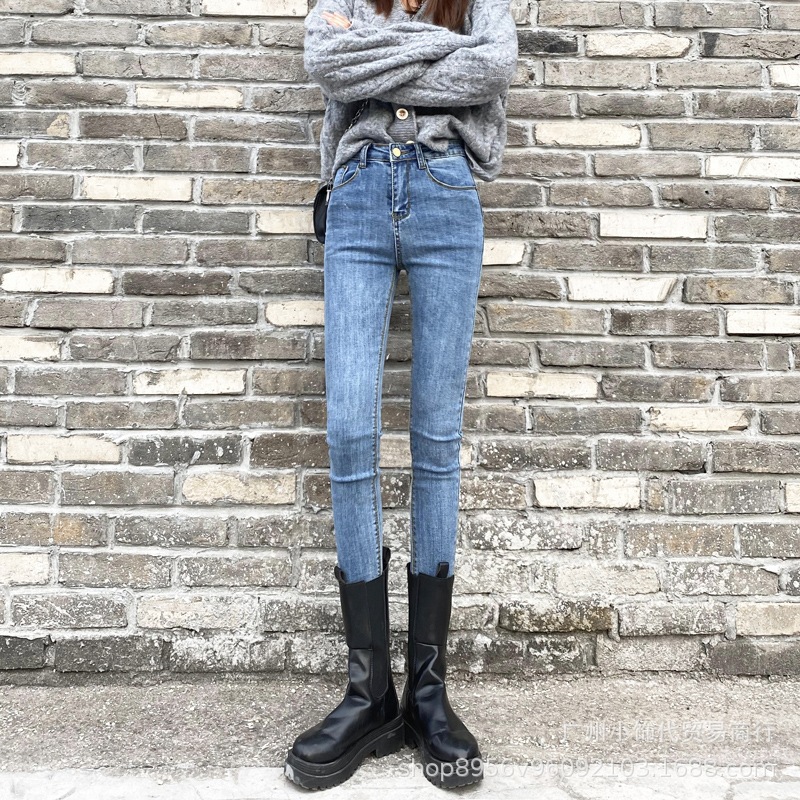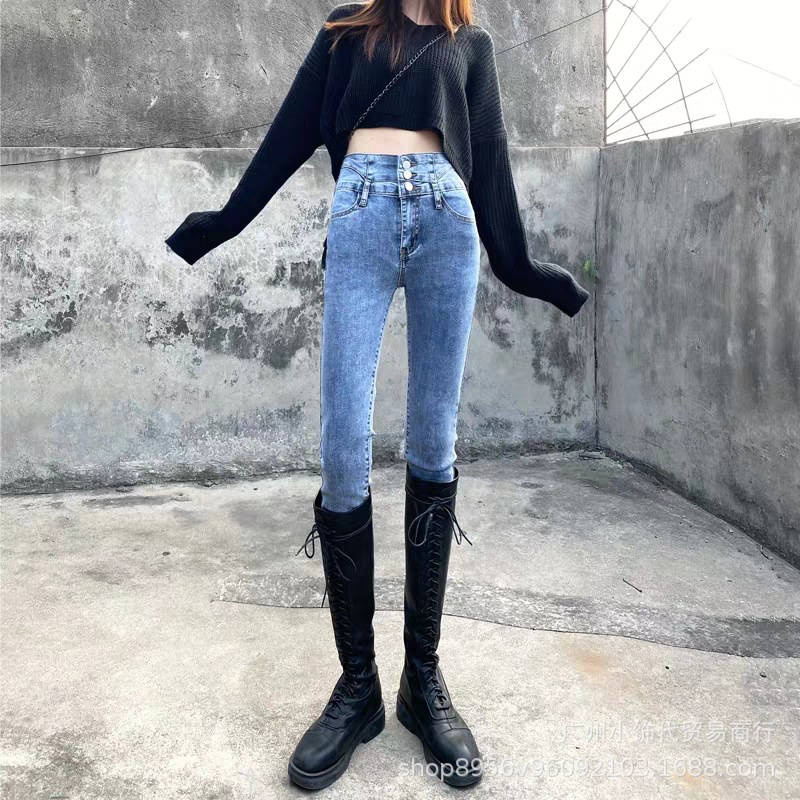 2022 Trendy Korean-style women's denim skinny, high-waisted, slimming stretch jeans from street vendors for wholesale