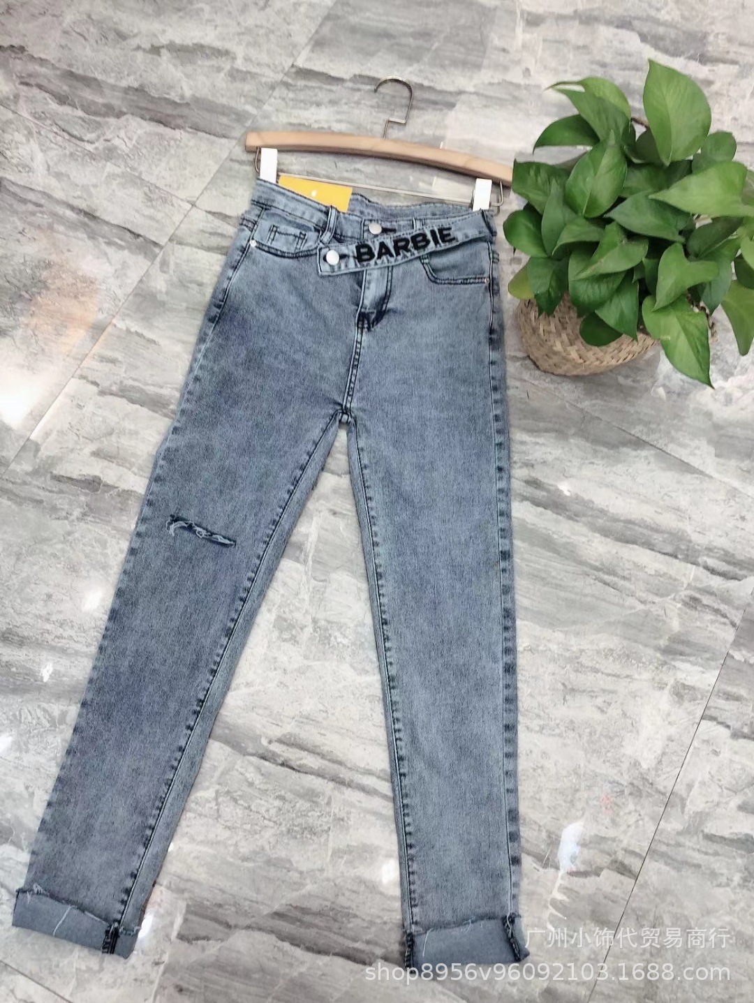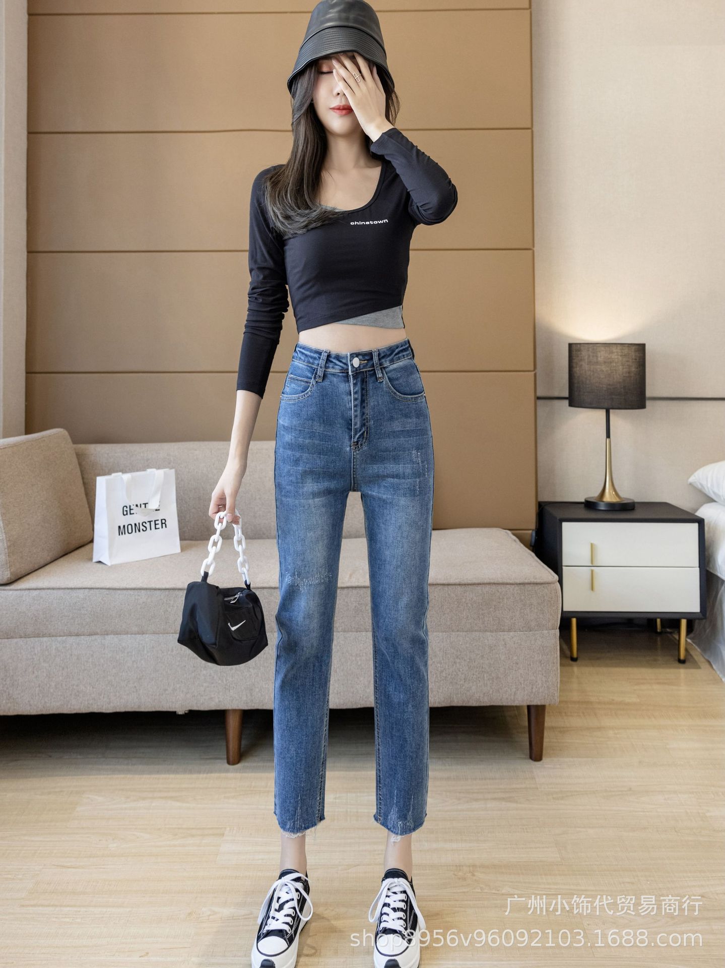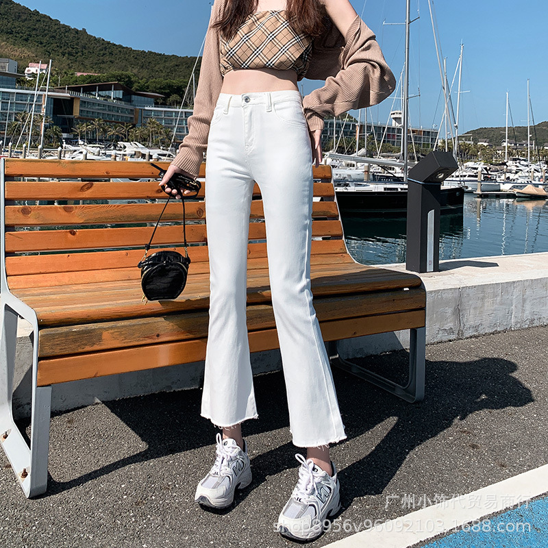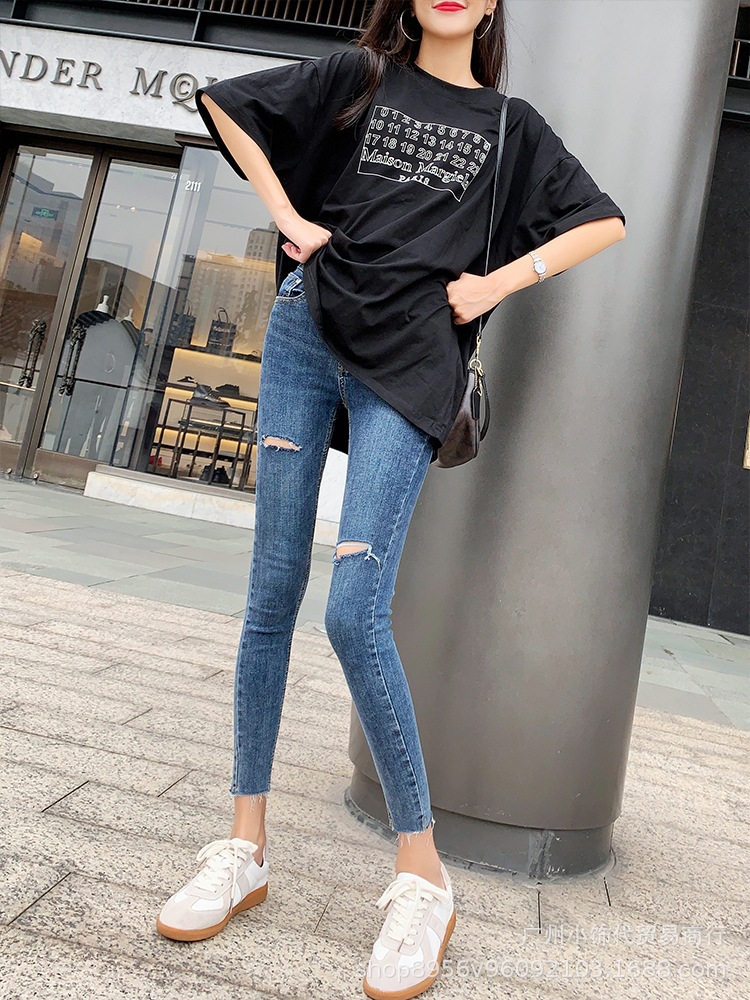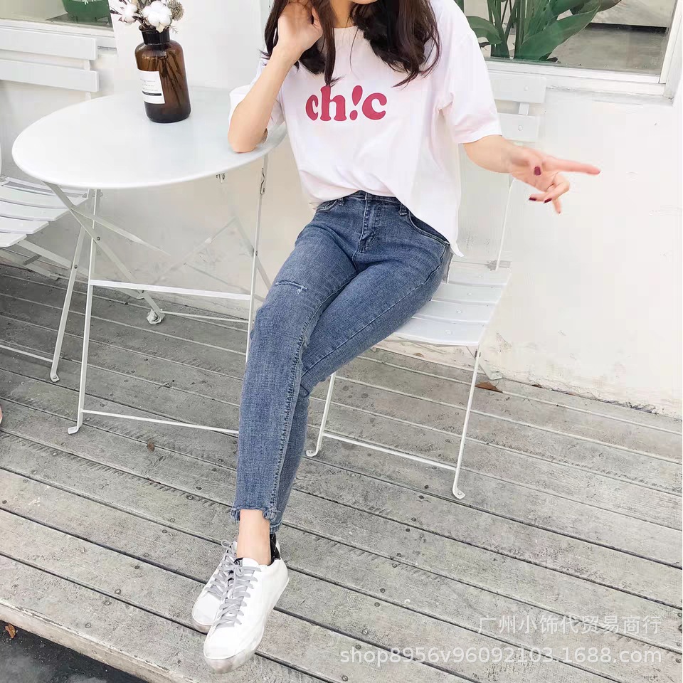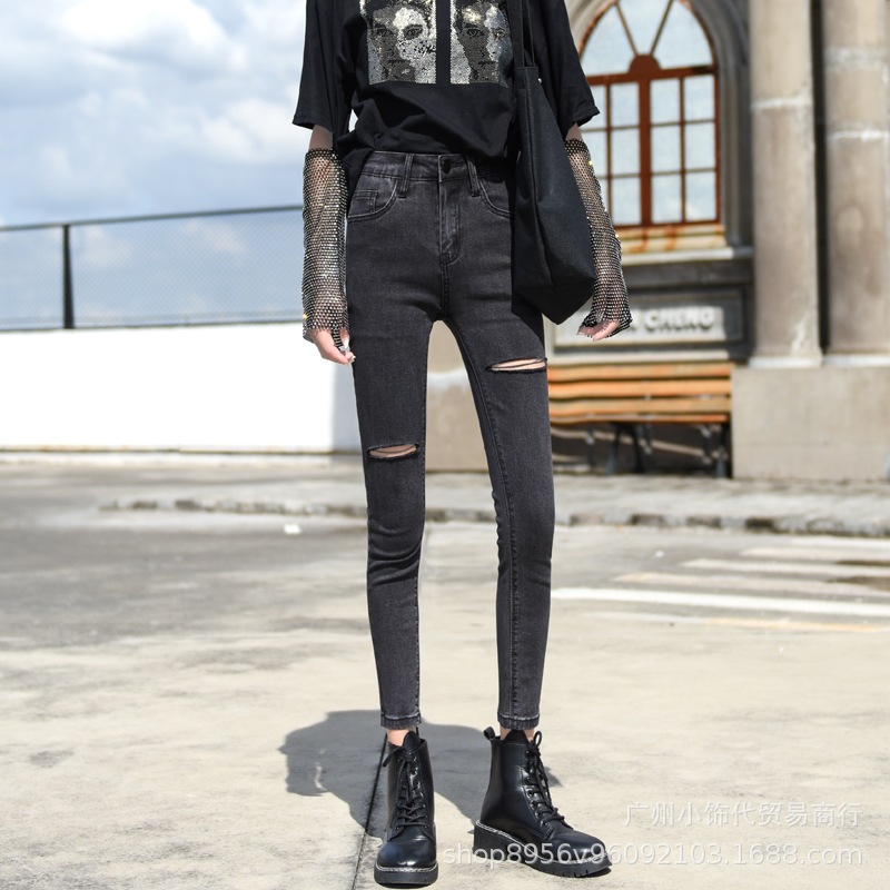2022 Trendy Korean-style women's denim skinny, high-waisted, slimming stretch jeans from street vendors for wholesale