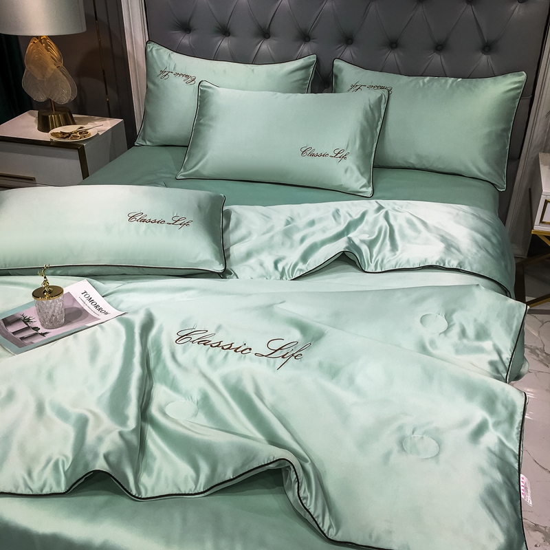 2022 Washed Silk Summer Cool Quilt Set, Spring and Summer Light Luxury ice Silk quilt, European-style silk bed sheet