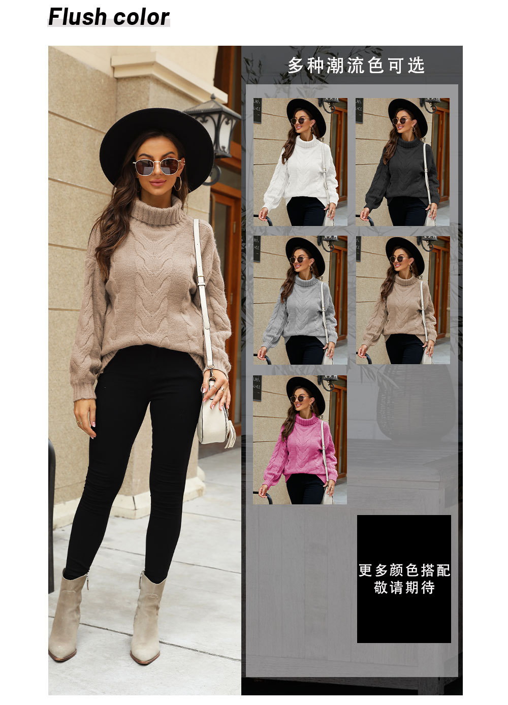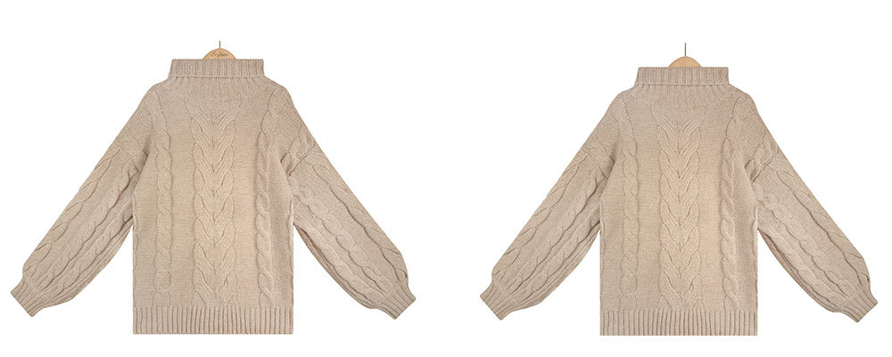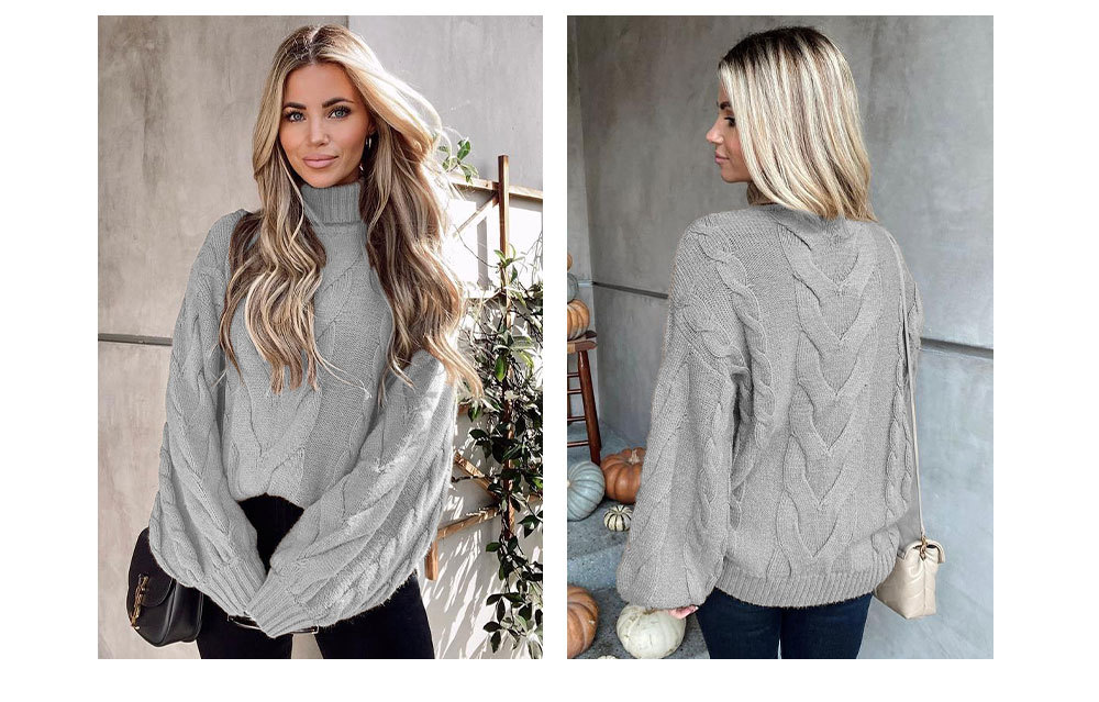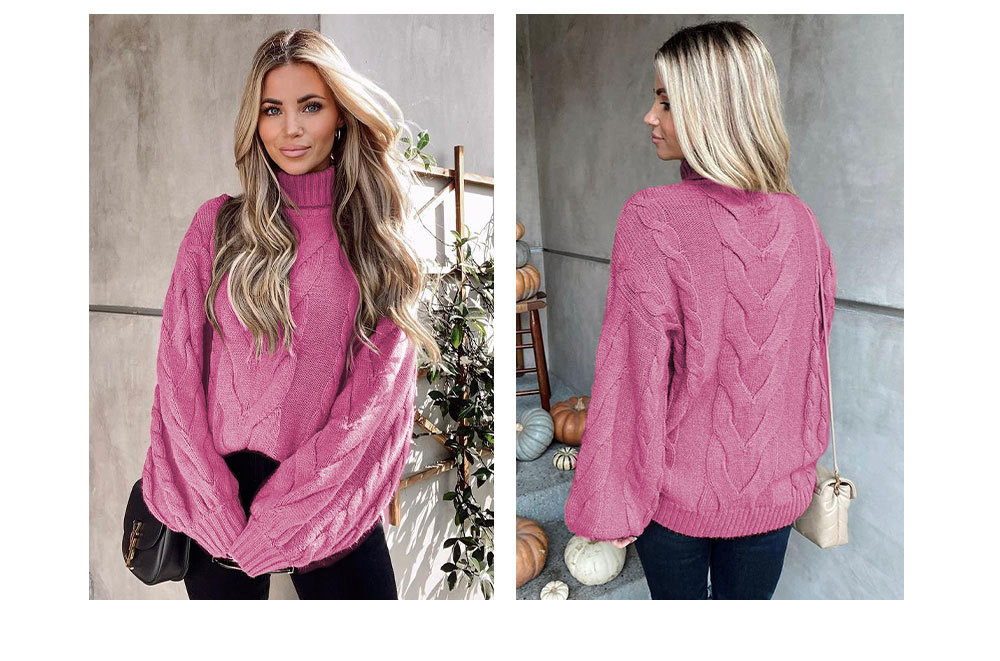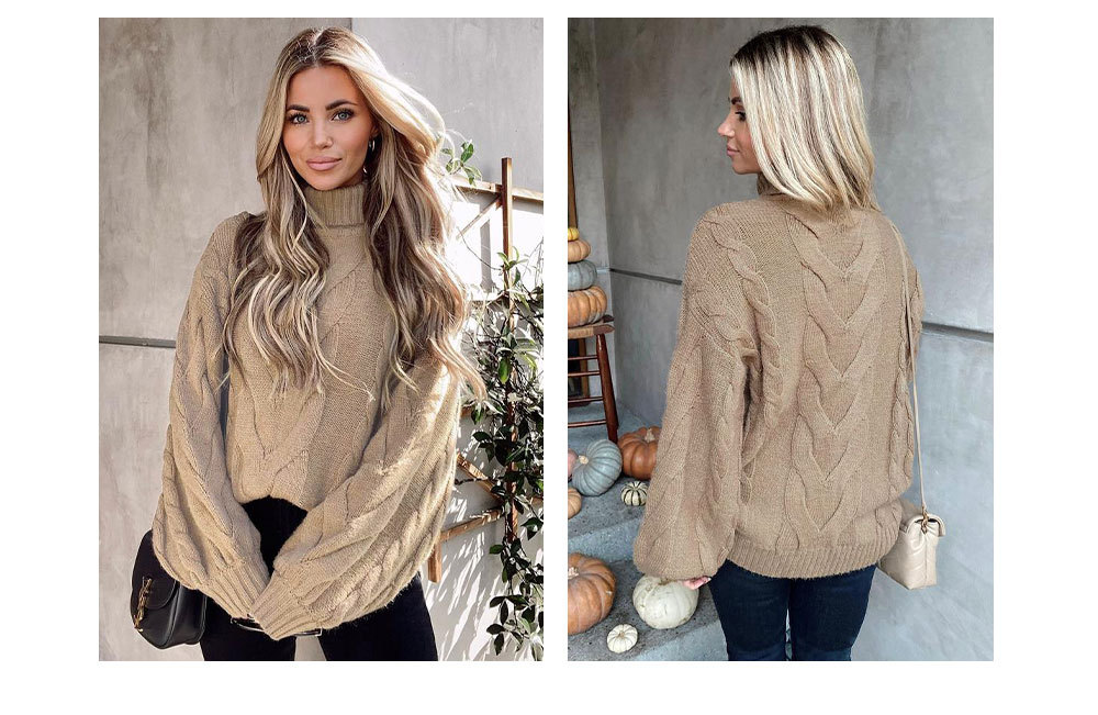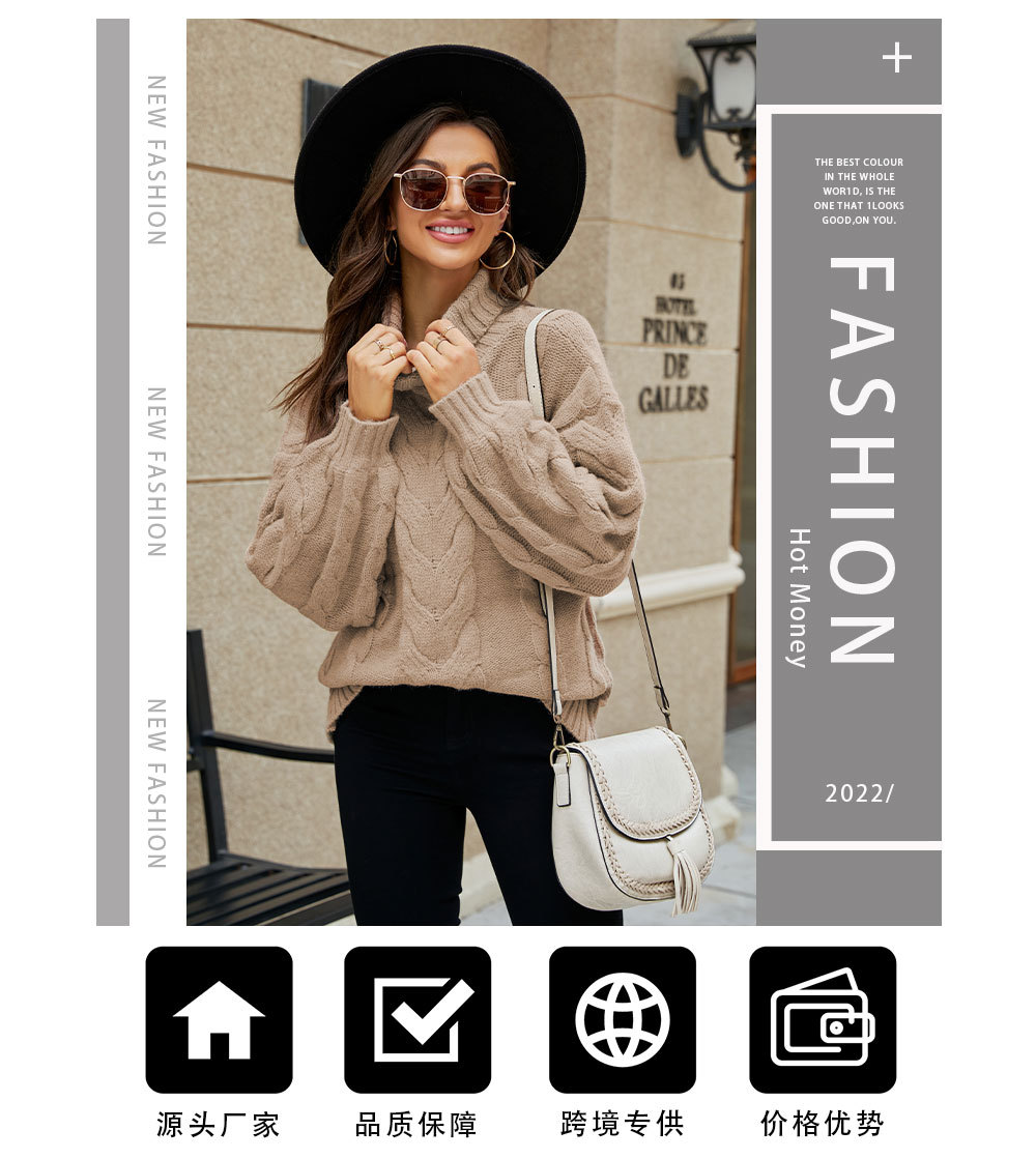 2022 Winter Amazon women's clothing flared sleeve pullover knitted sweater, European and American large-sized high-neck twisted sweater for women, thick