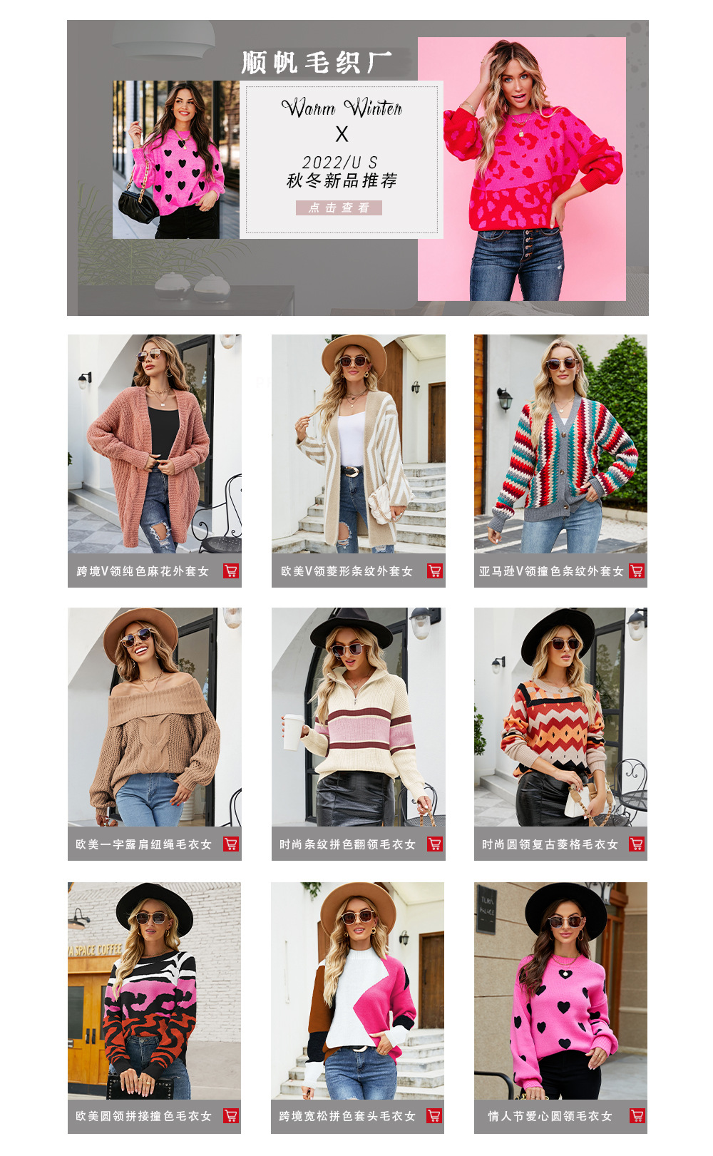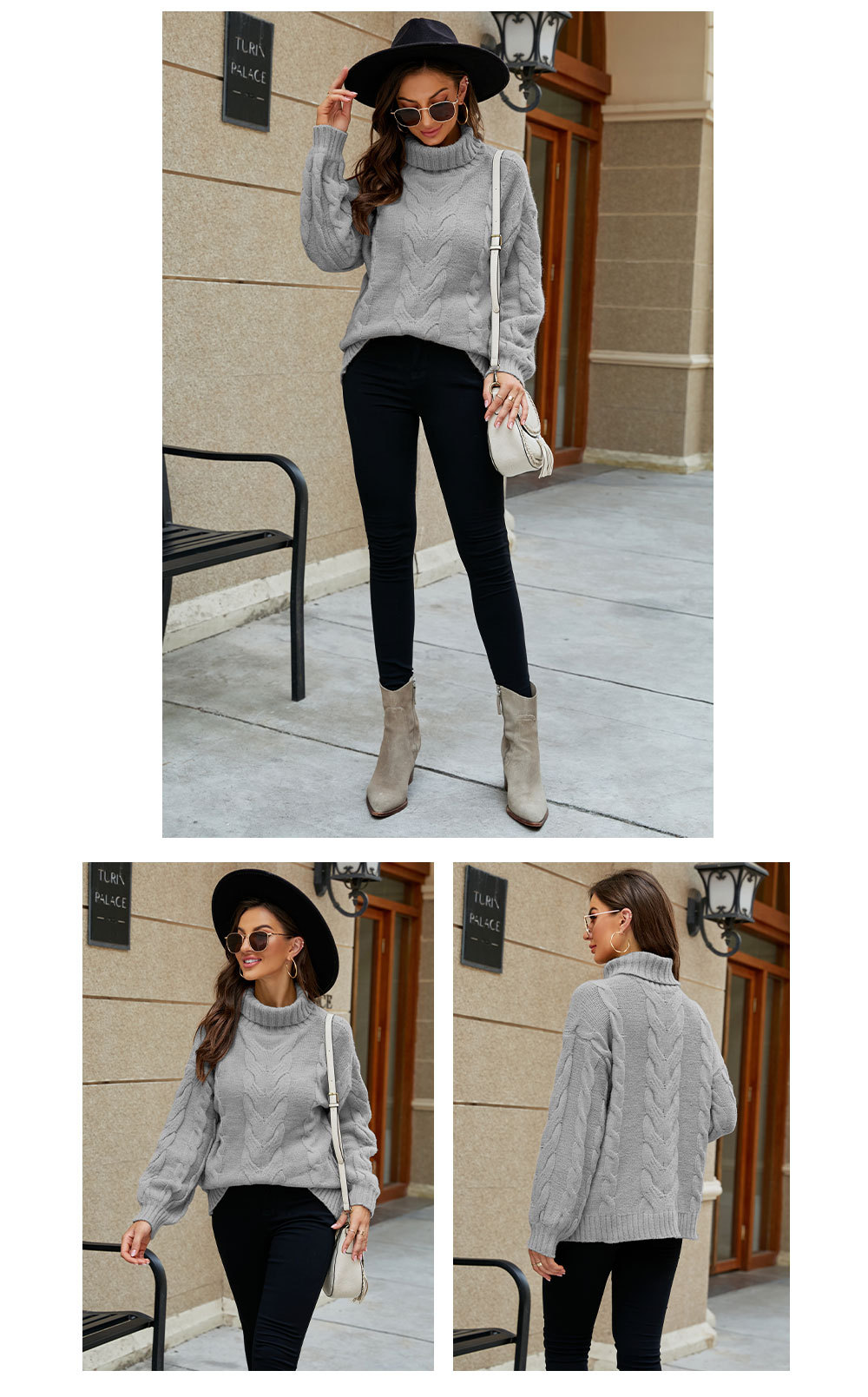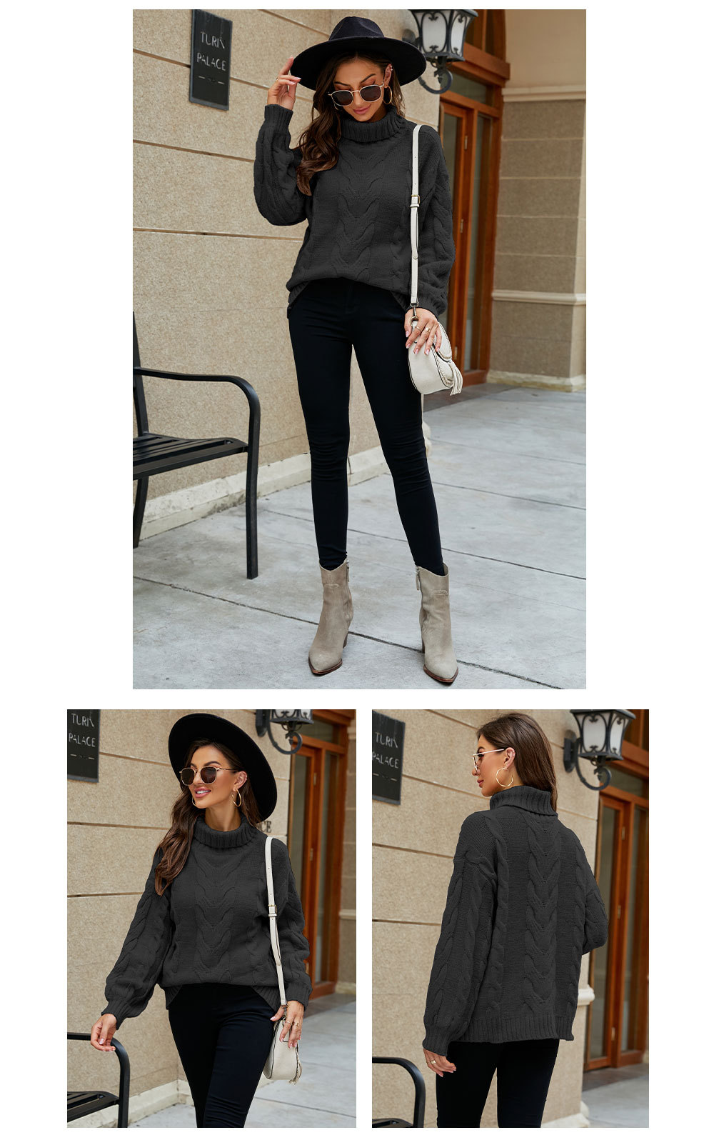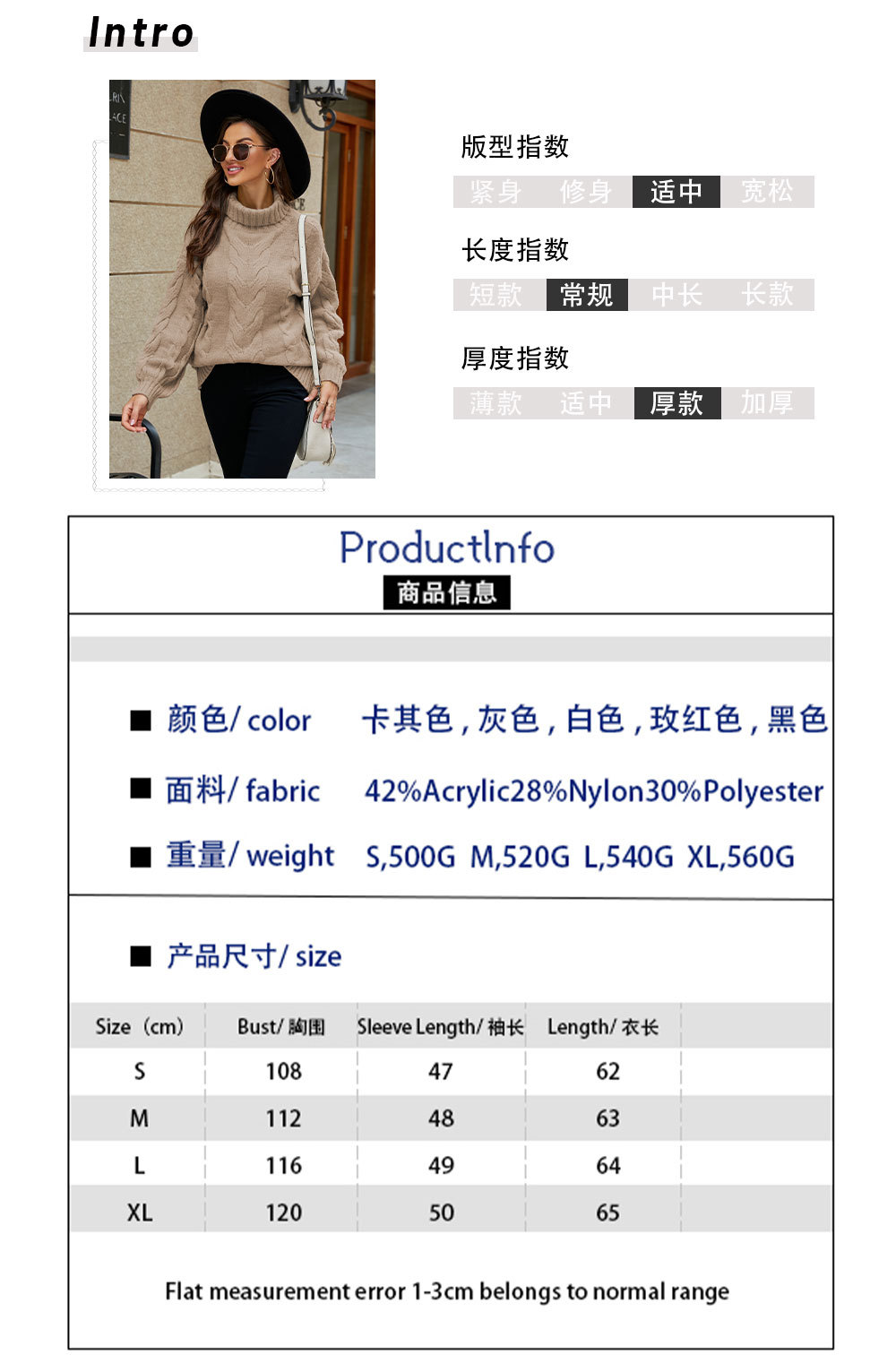 2022 Winter Amazon women's clothing flared sleeve pullover knitted sweater, European and American large-sized high-neck twisted sweater for women, thick