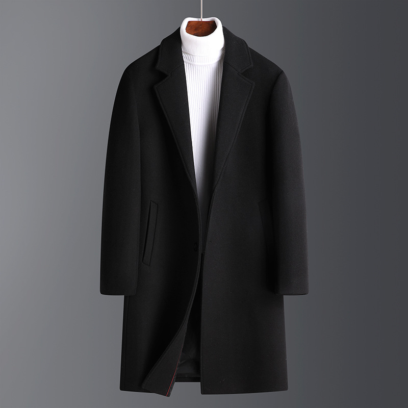 2022 Woolen overcoat Men's mid-length Korean-style casual men's middle-aged and young windbreaker Winter thickened woolen coat