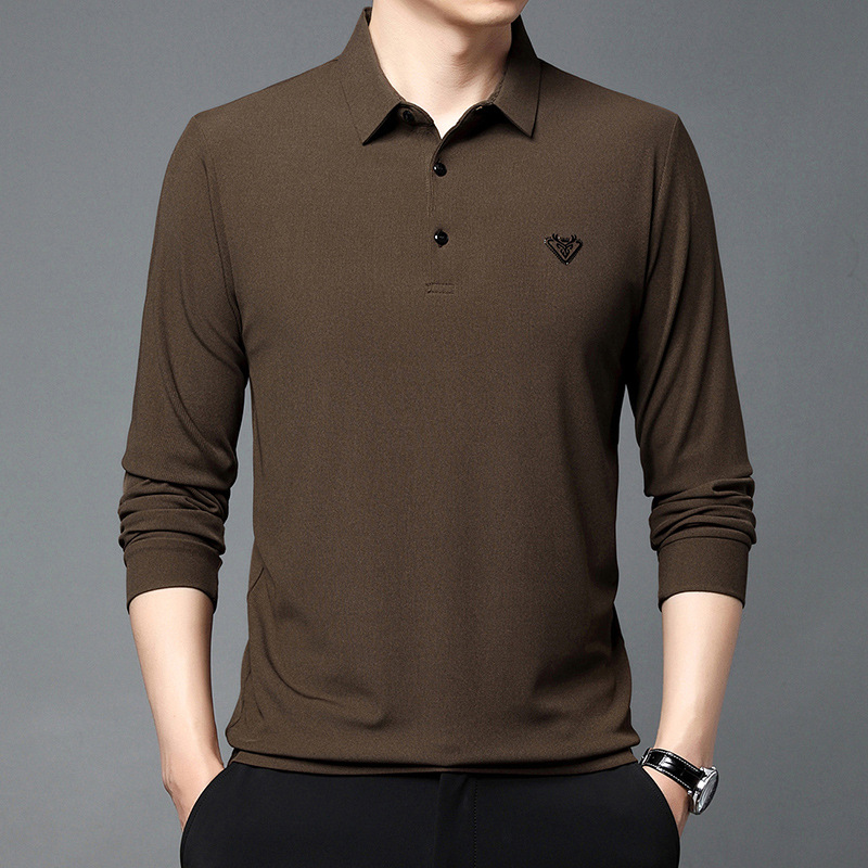 2023 Autumn new lapel long-sleeved T-shirt for men, solid color casual Polo shirt for men, dad's top as the base layer