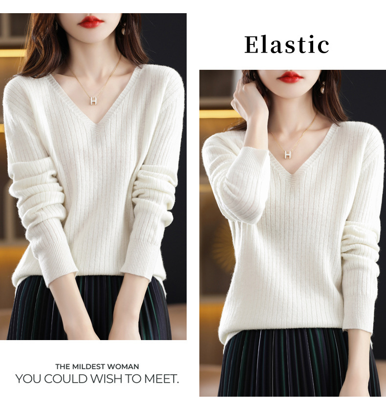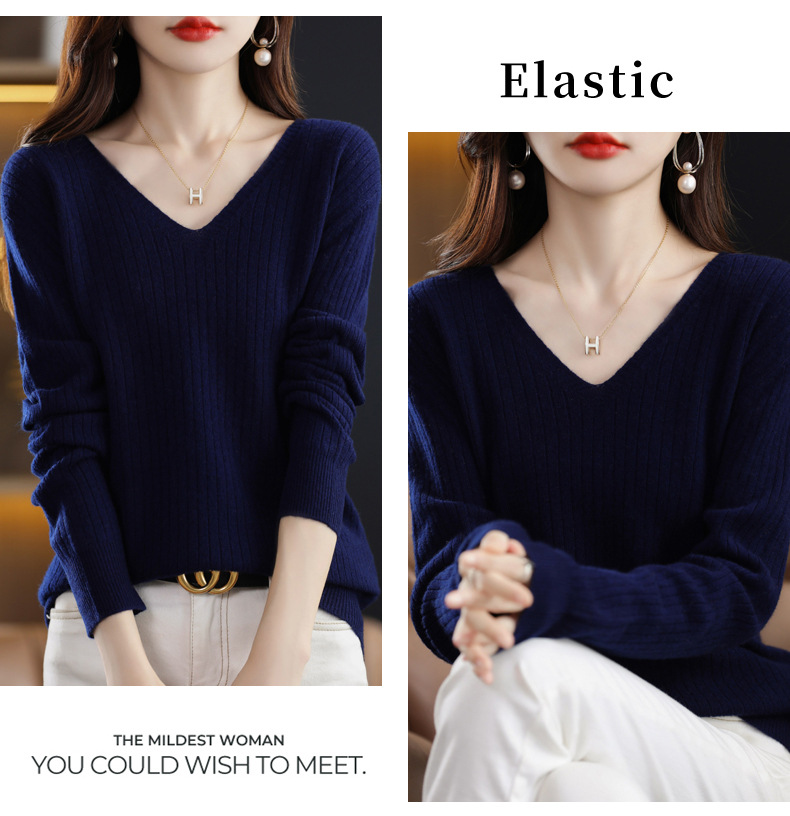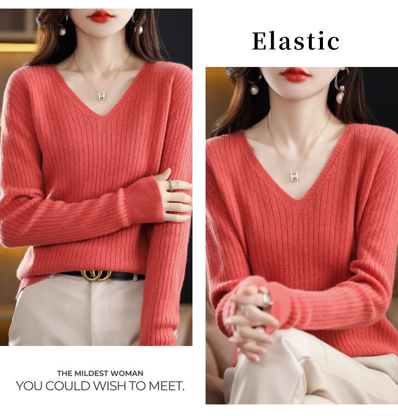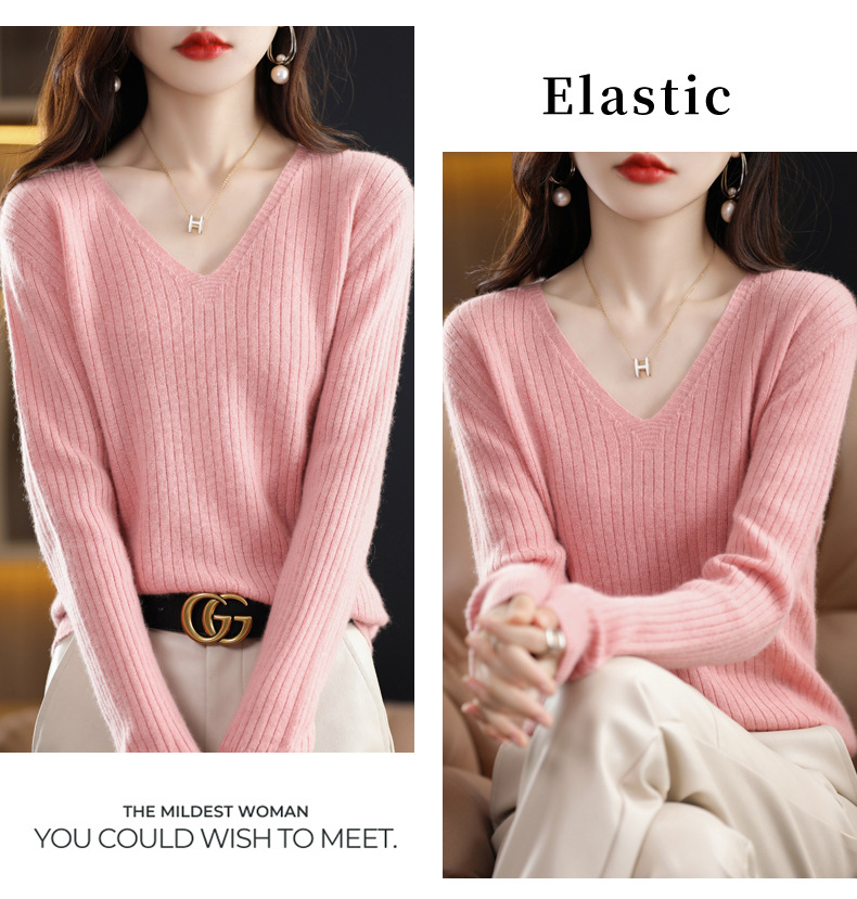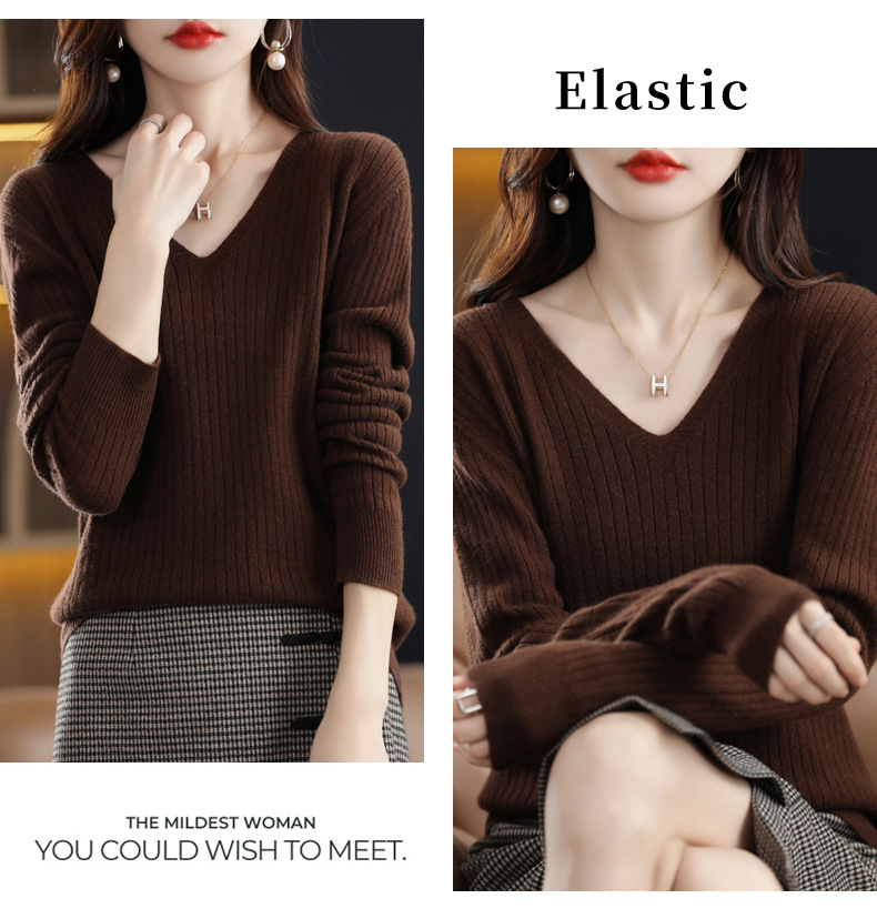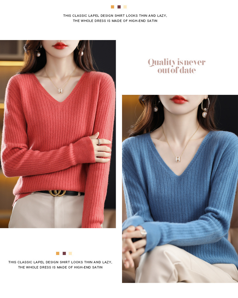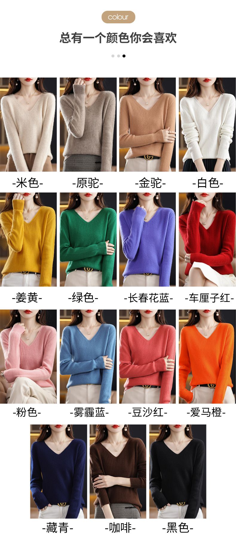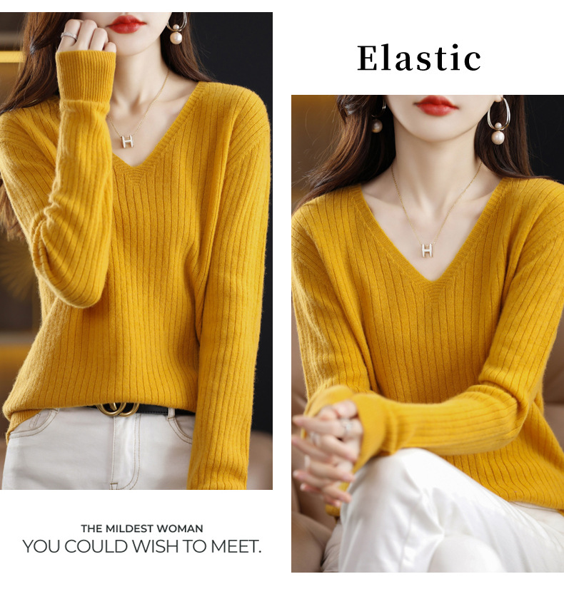 2023 Autumn Women's knitted sweater, pullover, low-neck sweater, women's V-neck base layer, woolen sweater, Korean version, export consignment