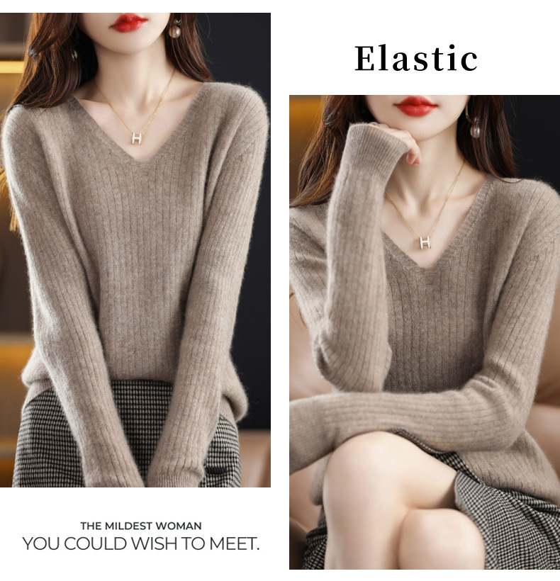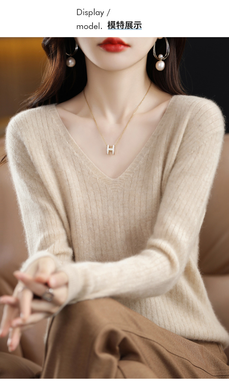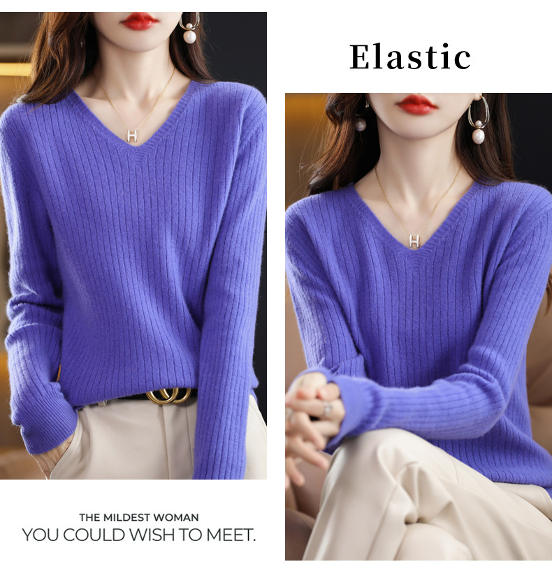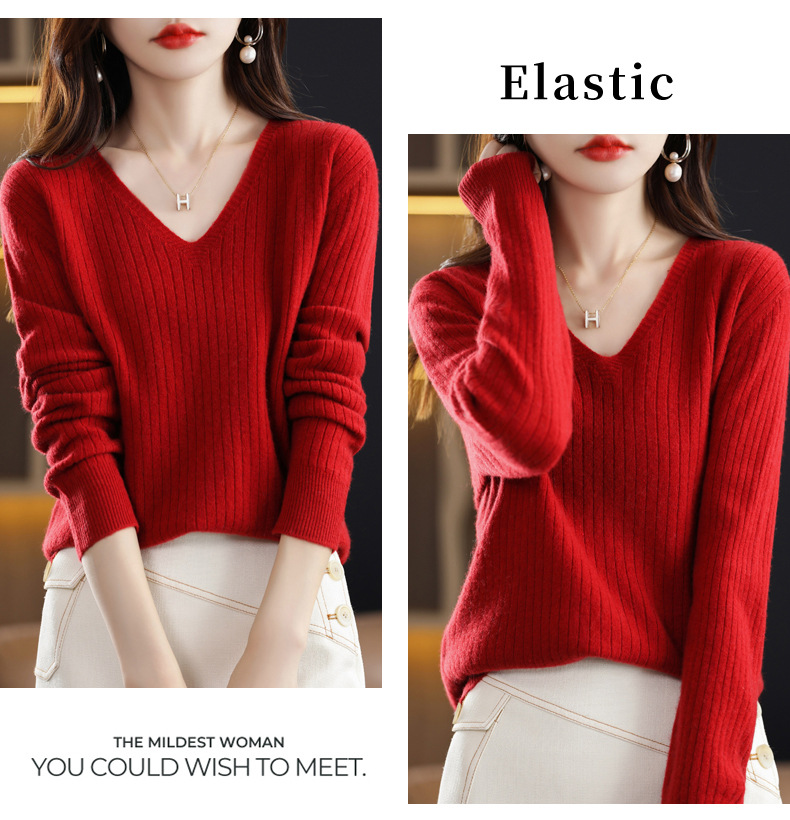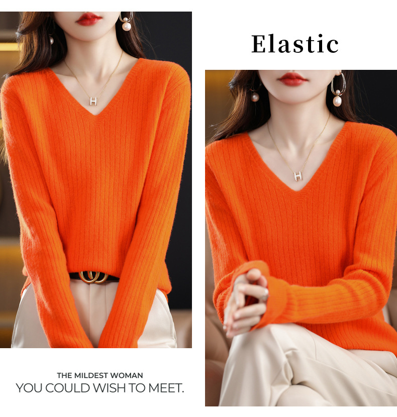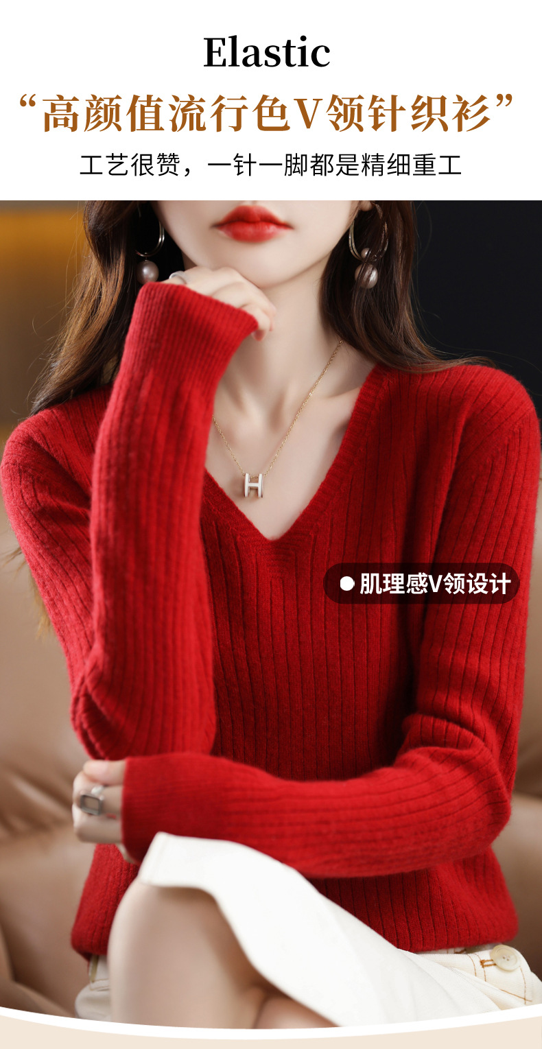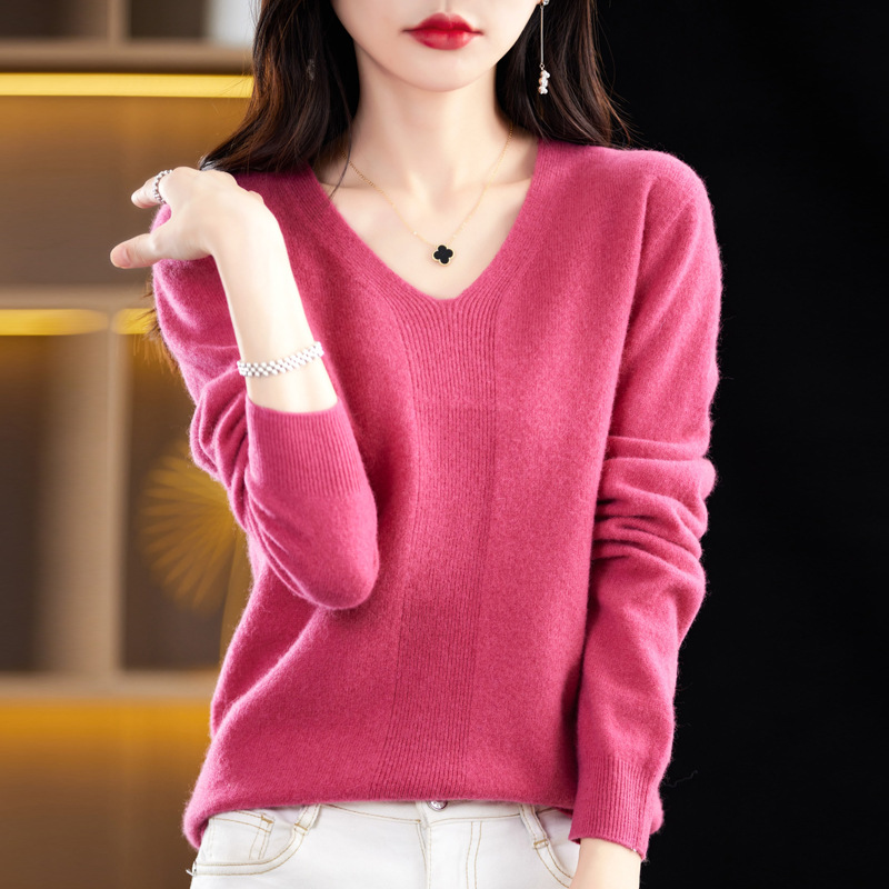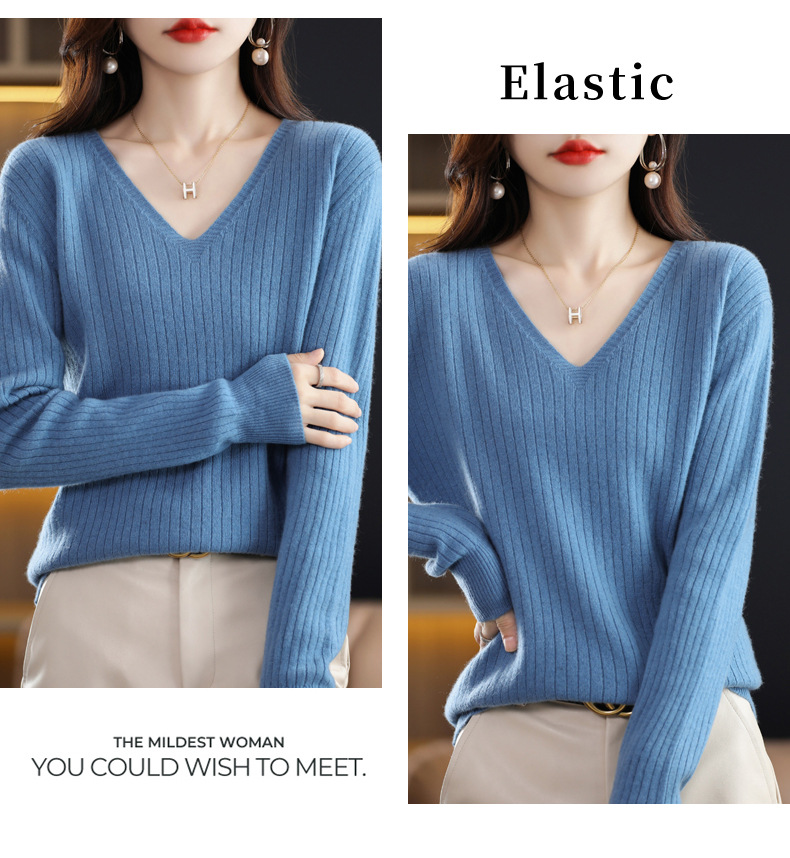 2023 Autumn Women's knitted sweater, pullover, low-neck sweater, women's V-neck base layer, woolen sweater, Korean version, export consignment