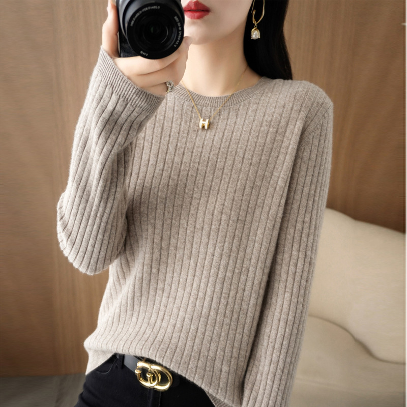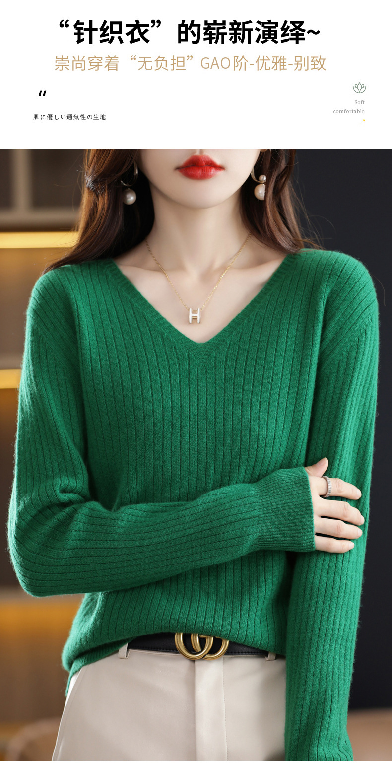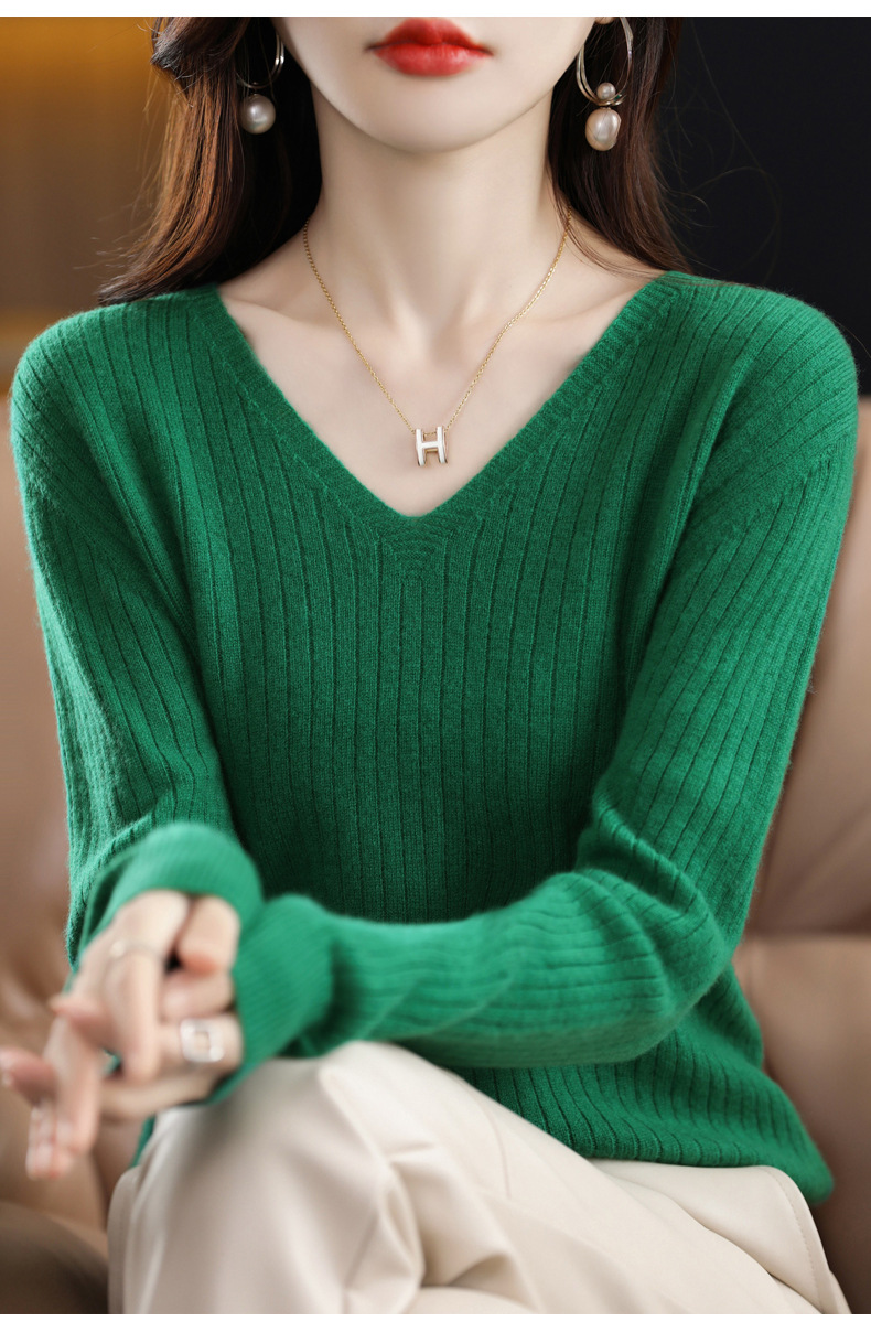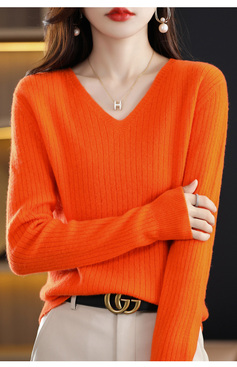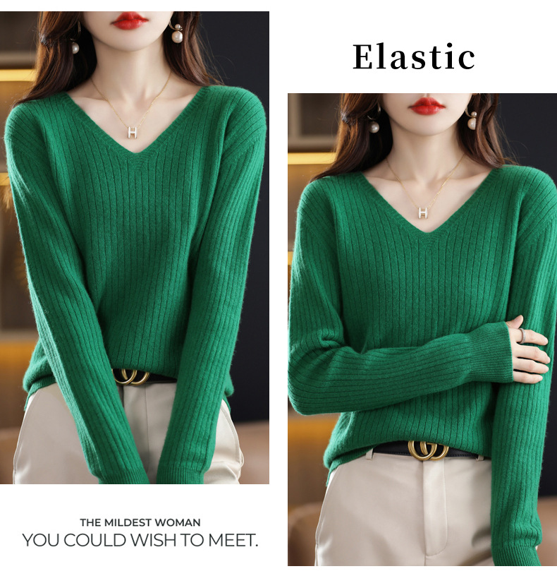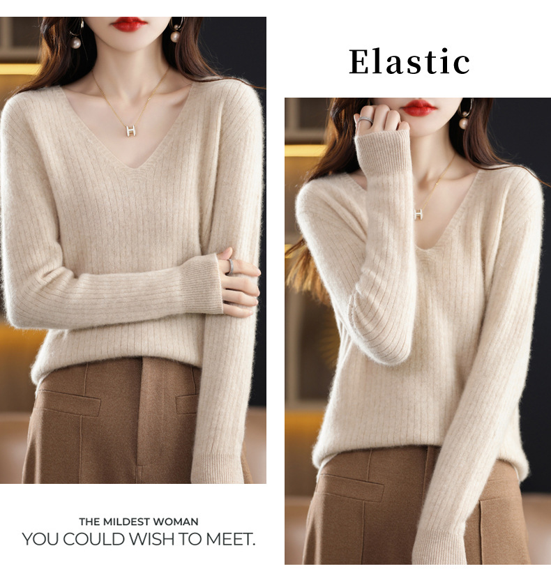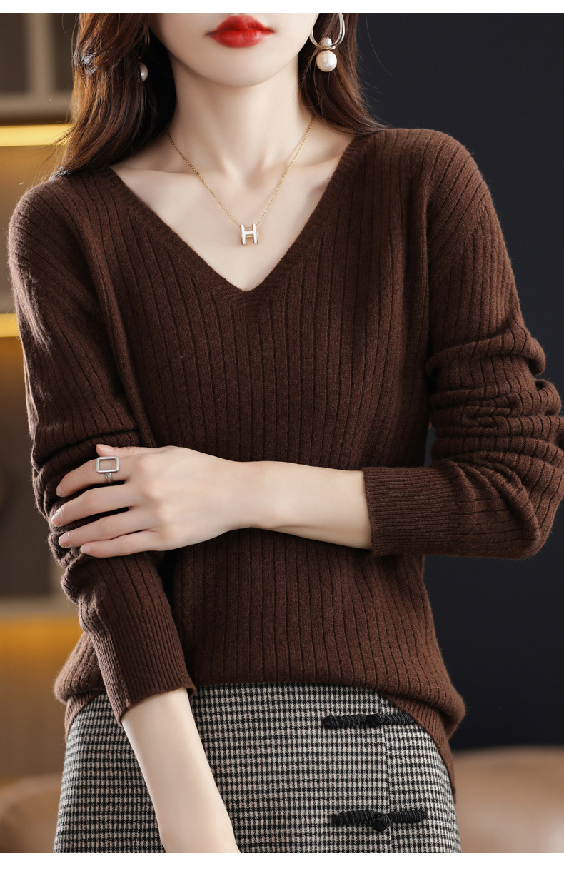 2023 Autumn Women's knitted sweater, pullover, low-neck sweater, women's V-neck base layer, woolen sweater, Korean version, export consignment