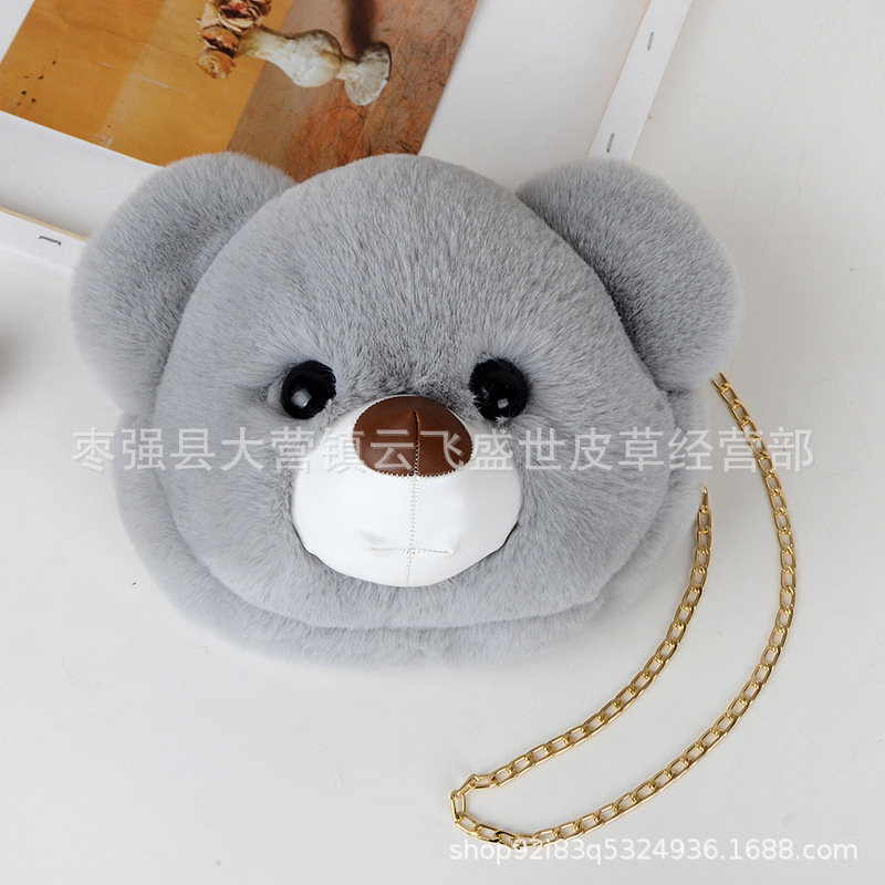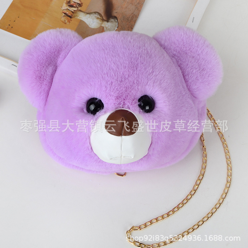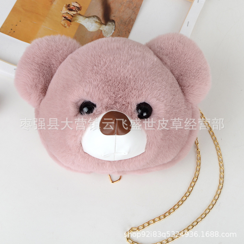 2023 Cute cartoon imitation rabbit fur plush bear head crossbody small bag for girls, new student girls and children's single-shoulder bag